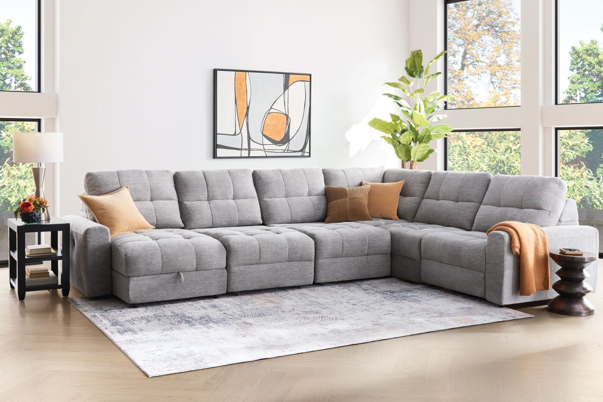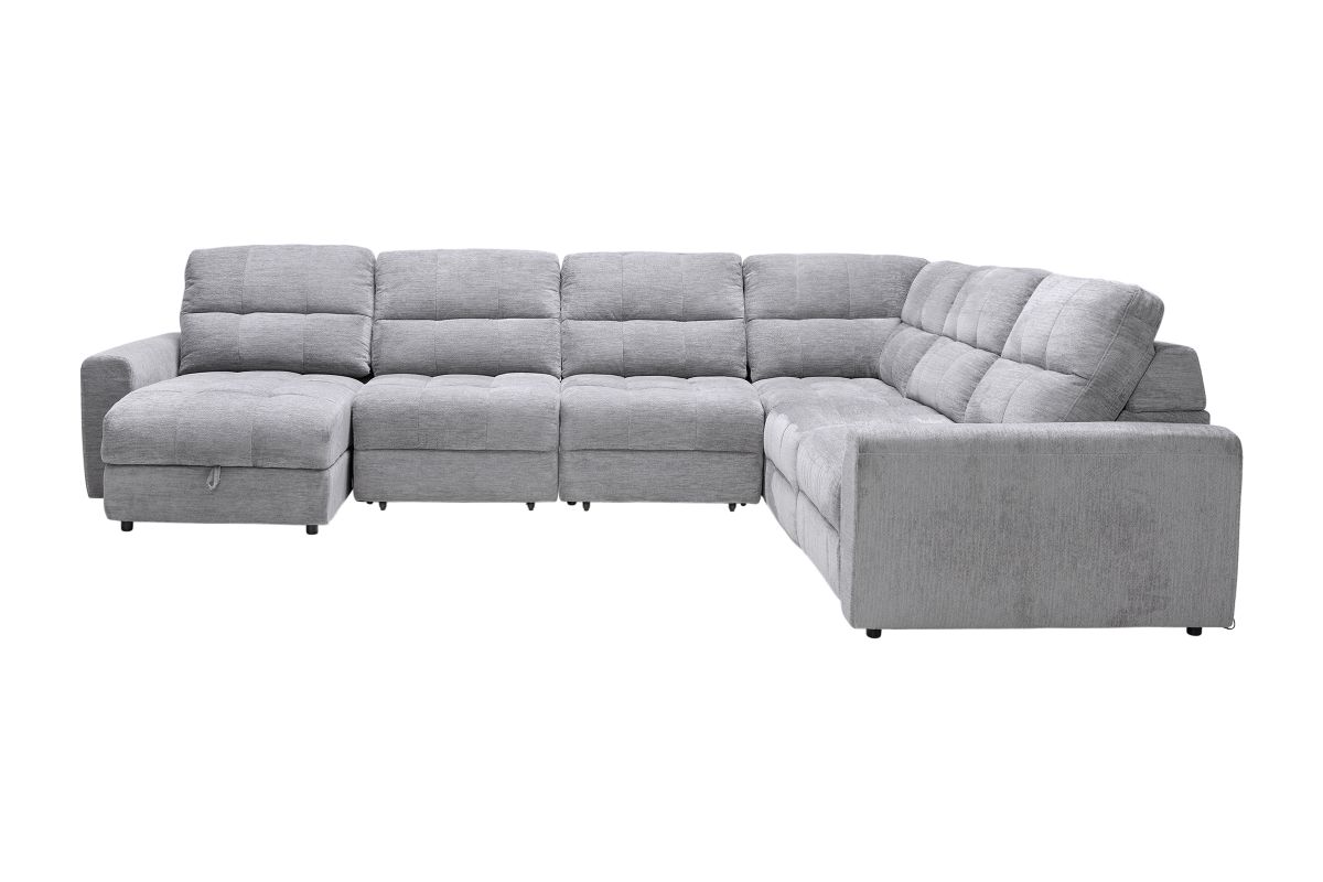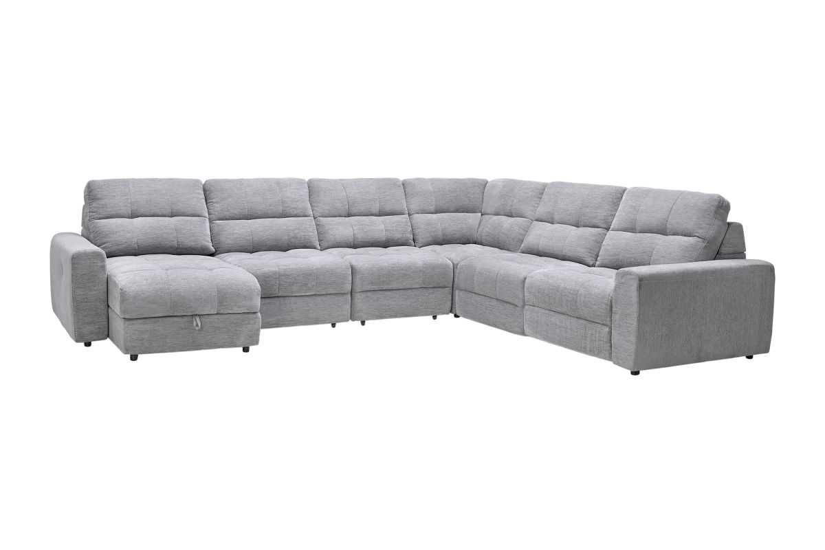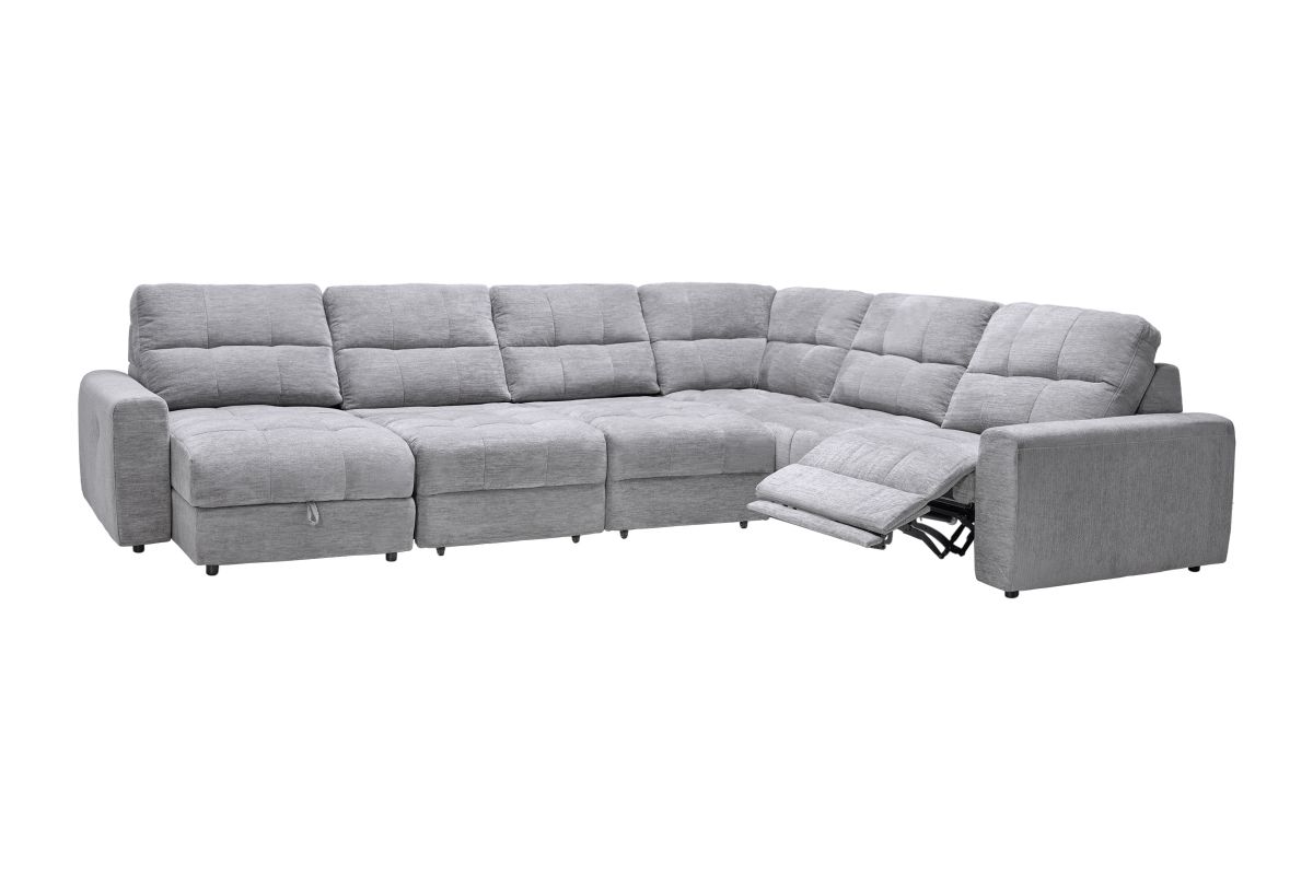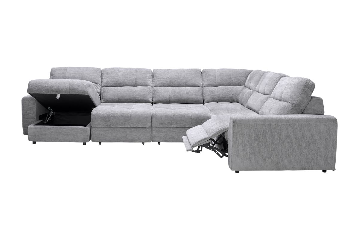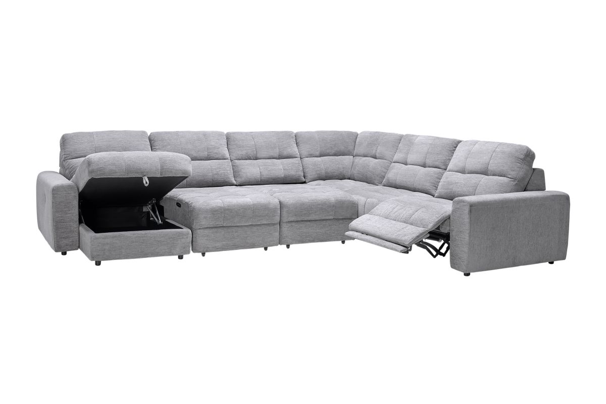 Elevate your living space with the versatile and comfortable Phoenix collection, thoughtfully crafted for both style and functionality. With its modular design, this sectional allows for customizable configurations to perfectly fit your space and lifestyle. Featuring power reclining seats with effortless relaxation at the touch of a button and smart storage solutions like a lift-top chaise to keep your essentials close at hand. The wall-hugger design saves valuable space by allowing the sectional to recline while placed just inches away from the wall.