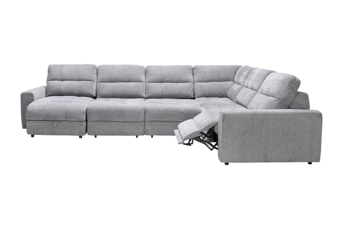 Includes: Left Arm Facing Chaise + Armless Chair + Corner + (2) Armless Power Sliders + Right Arm Facing Recliner