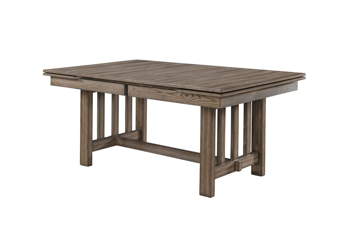 The Lakeside Collection is Crafted of Solid Rubberwood, Manufactured Woods and Oak Veneers, this Dining Set is designed to last. The rich Walnut Brown color is achieved through a multi-step process that include burnishing and glazing to bring out the natural beauty of the wood grain. The traditional trestle base features a solid, pillared base that complements the slat-backed dining chairs. The design blends elements of farmhouse, mission, and arts and crafts styles.