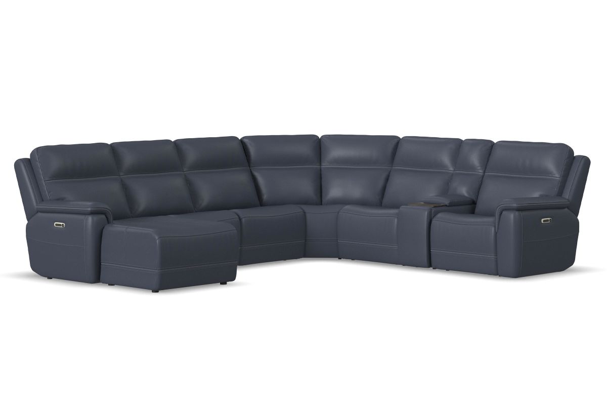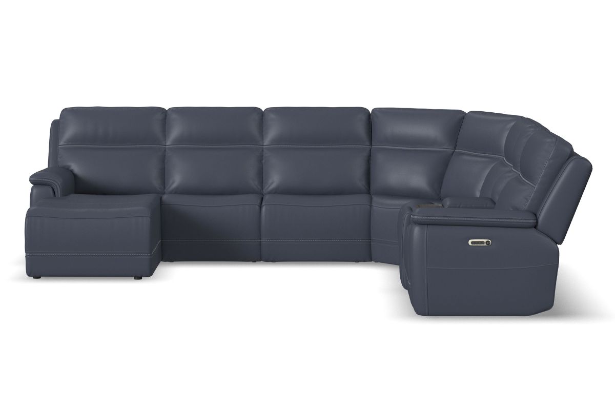 Includes: Left Arm Facing Chaise + Console + Armless Chair + Wedge + (2) Armless Recliners + Right Arm Facing Recliner