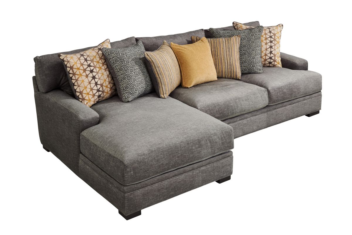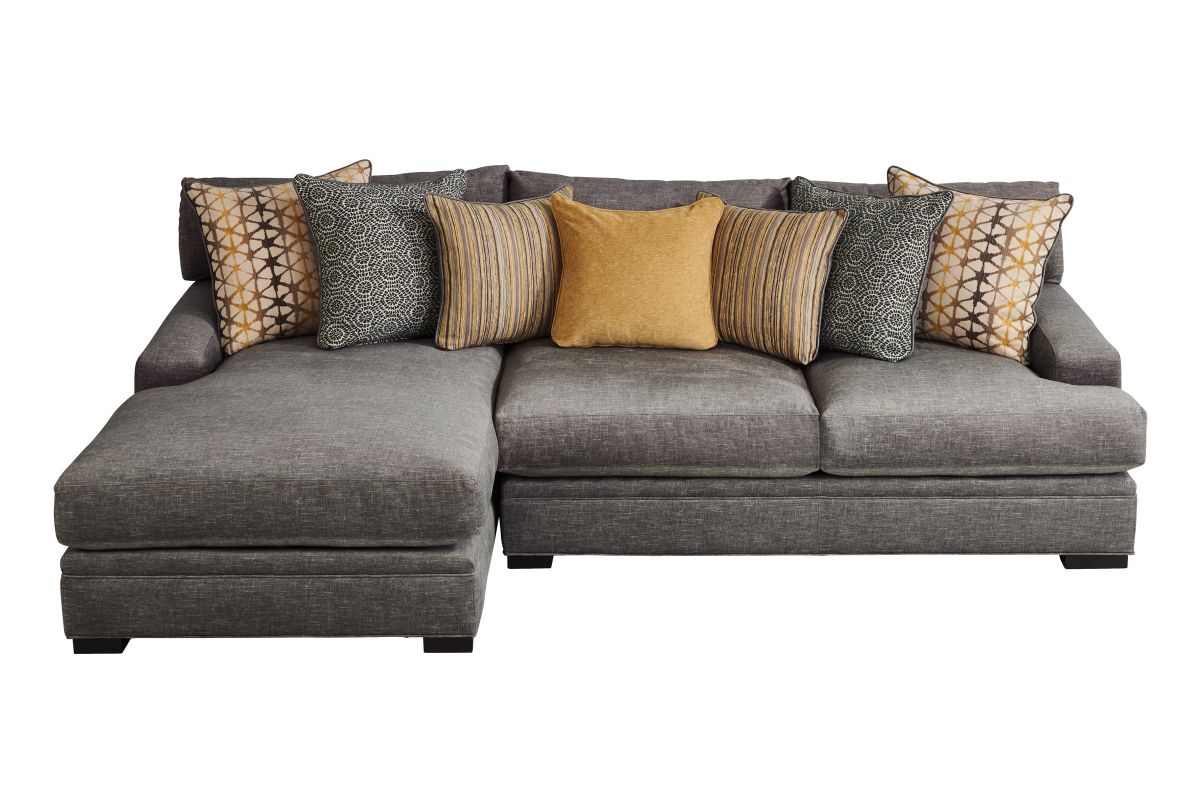 The Bulova Seating Collection is the perfect large-scale centerpiece for your living space, blending contemporary appeal with deep seated comfort. The classic style of the track arm paired with the colorful toss pillows offers a stylish yet sophisticated detailing. Proudly crafted in the USA, this oversized seating collection comfortably sits the whole family. The neutral tones of the fabric allow for this collection to blend with a variety of styles while the toss pillows give a pop of color. Host endless family movie nights on the stylish Bulova Seating Collection.