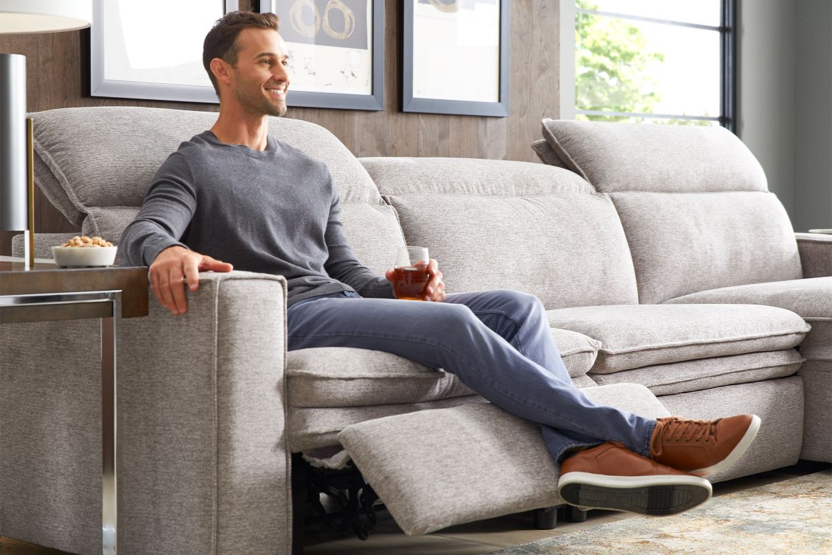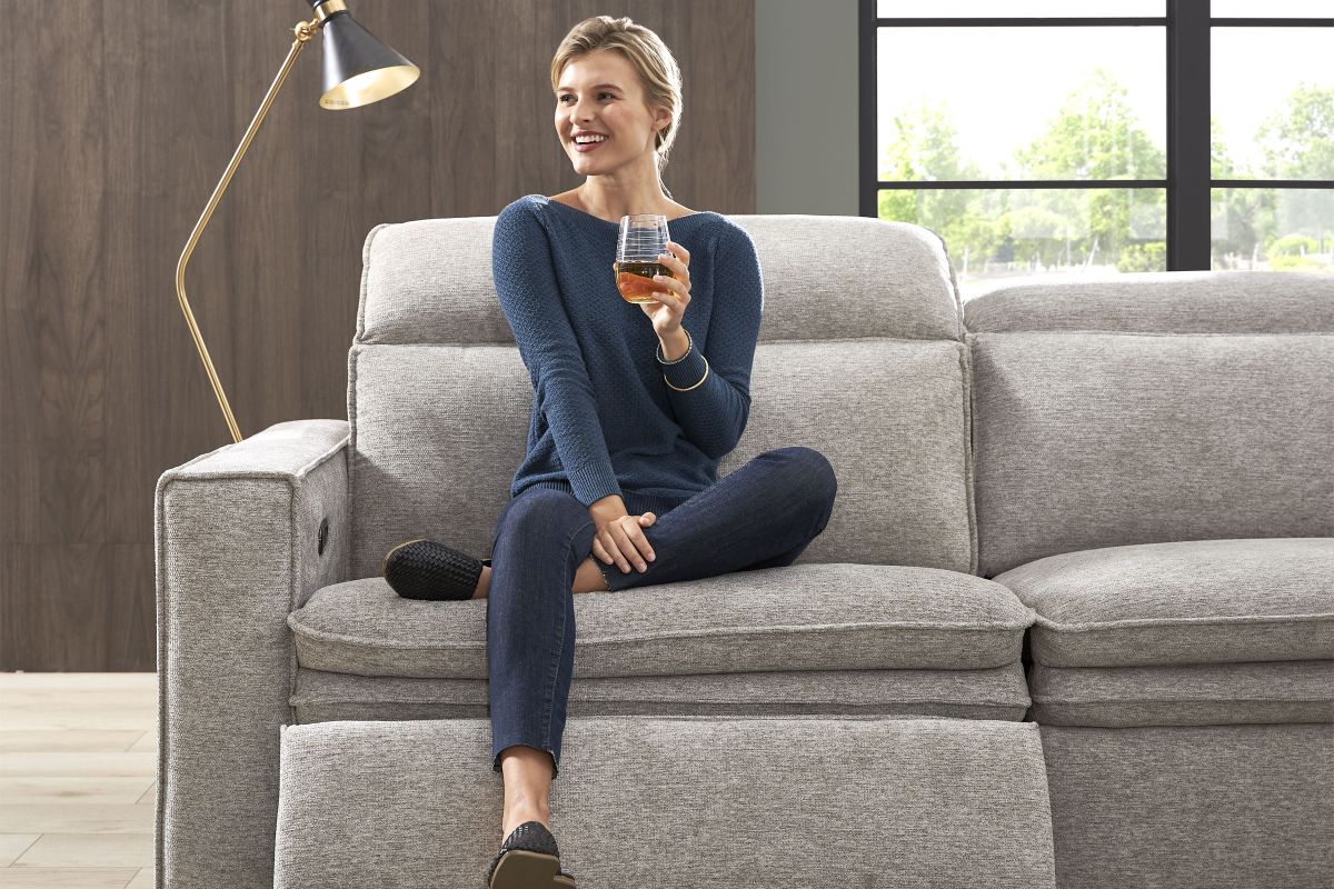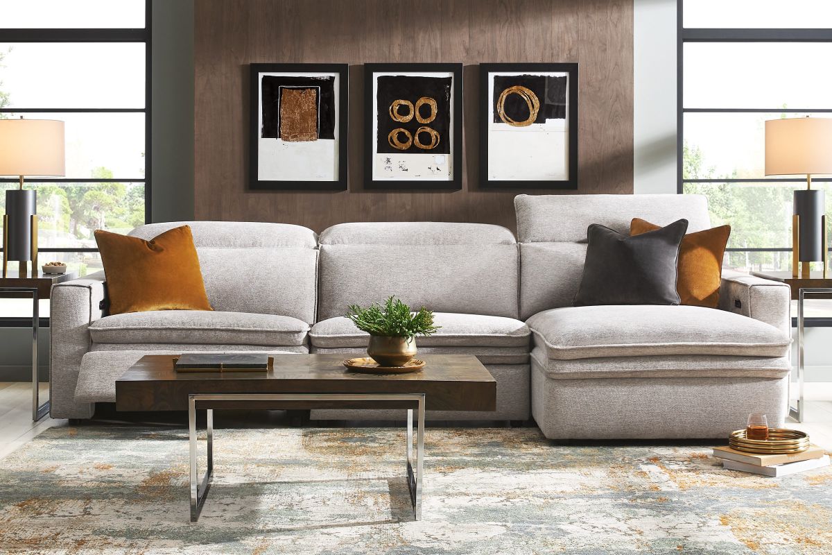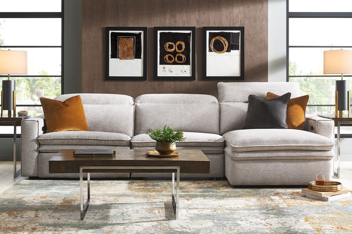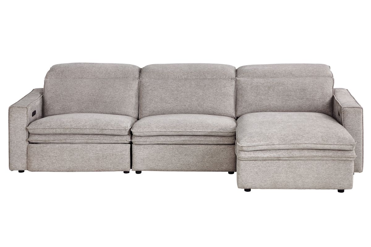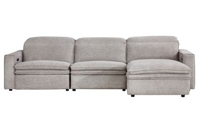 Sleek, chic, and altogether unique, the Salvator Street sectional's spacious seating and seamless functionality is the perfect blend of modern comfort and urban sophistication. Upholstered in a woven fabric, this sectional features stylish track arms, dark cylindrical legs and attached double pillow pad seat cushions for a luxurious feel. The dual power reclining feature allows adjustment in the head and footrest for personalized support while the chaise allows adjustment in the headrest for the ultimate lounging experience.