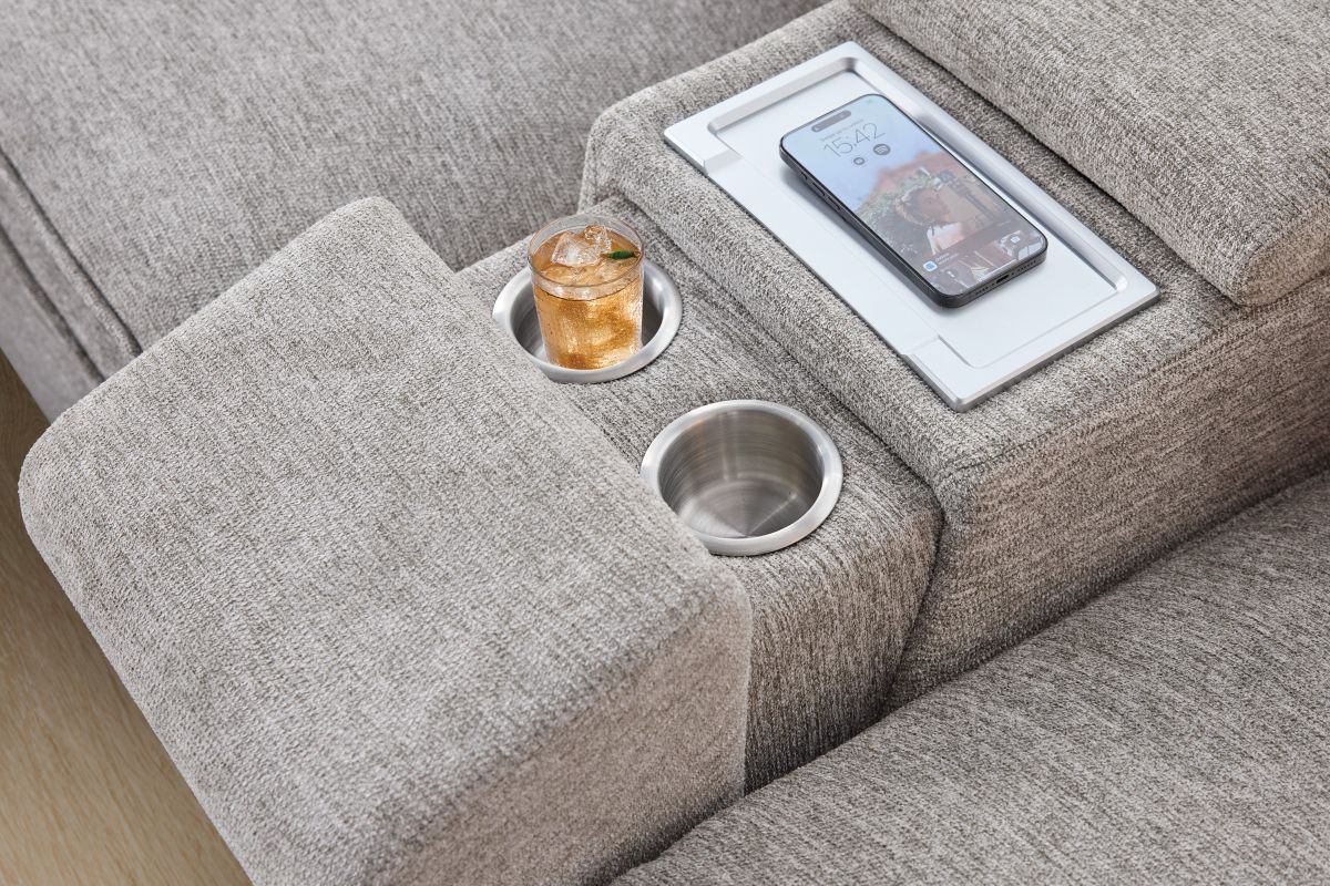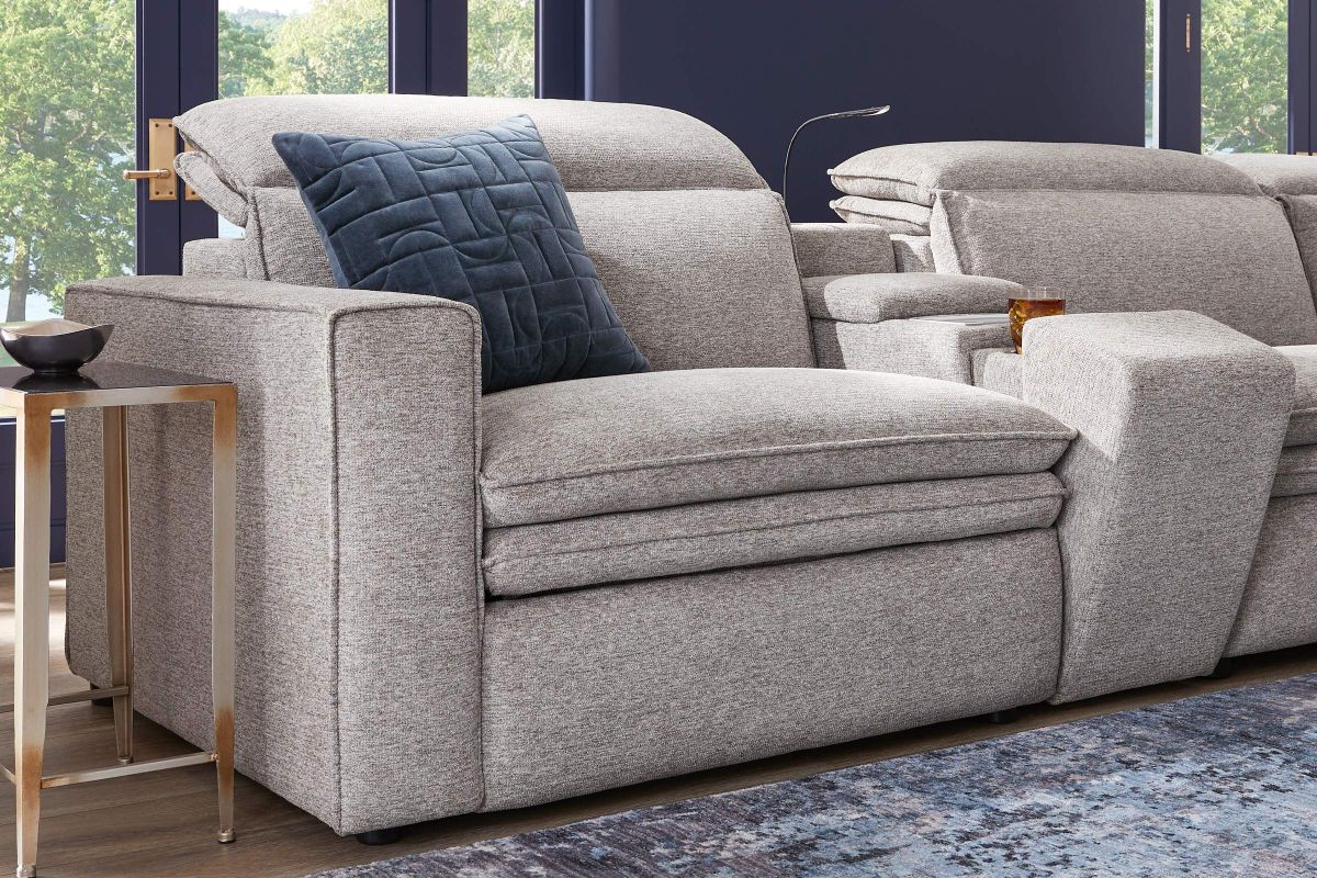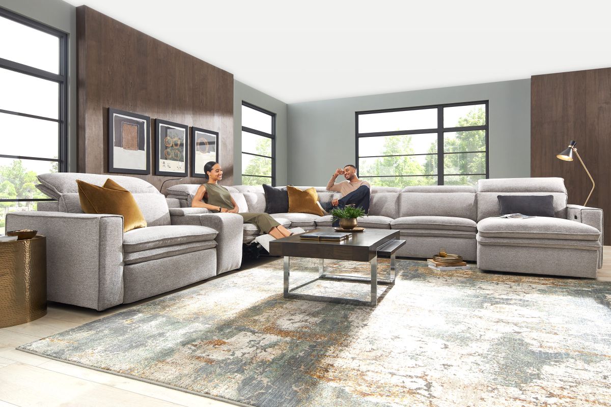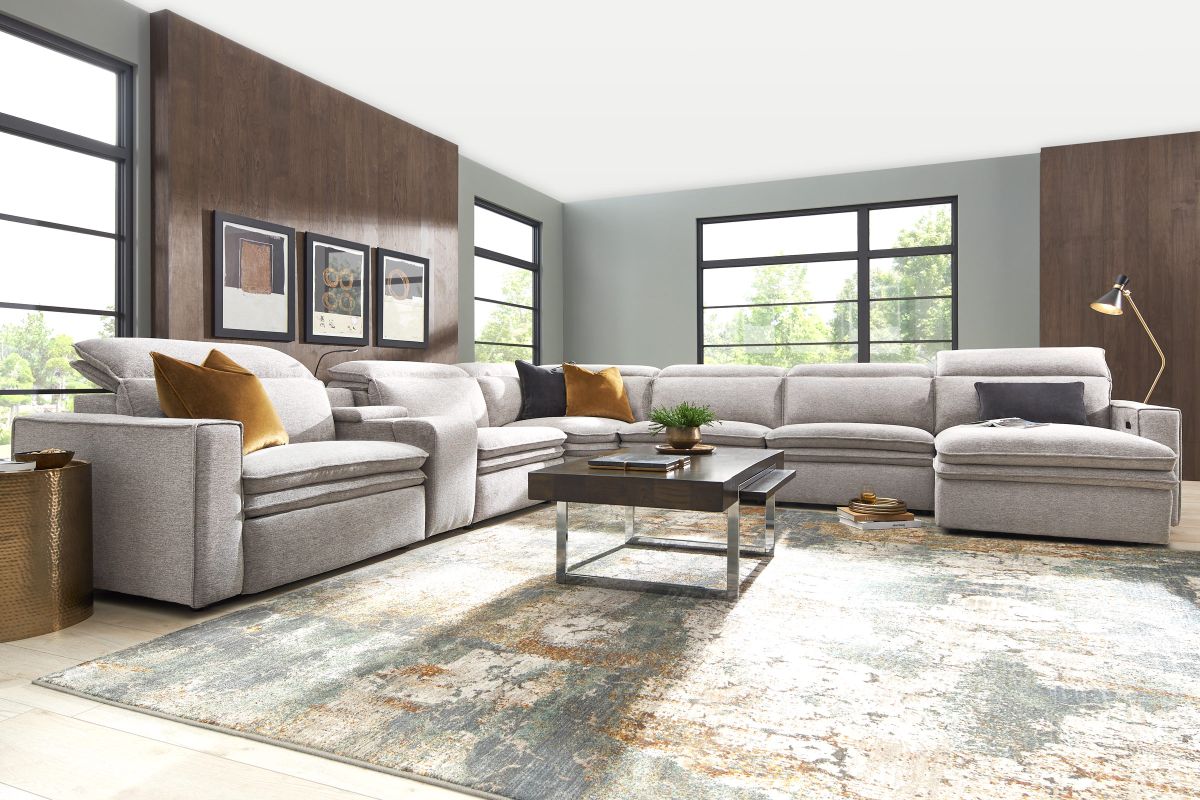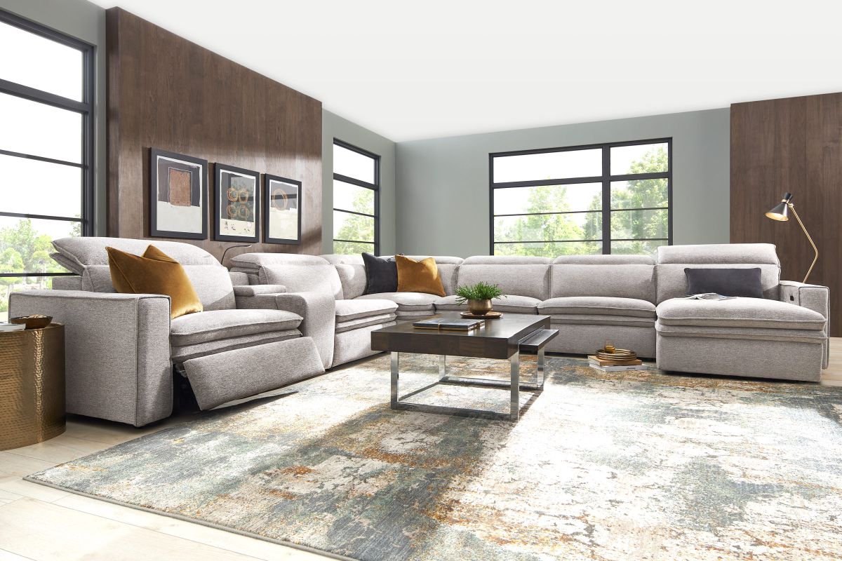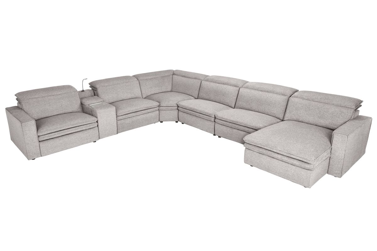Sleek, chic, and altogether unique, the Drew & Jonathan Salvator Street sectional's spacious seating and seamless functionality is the perfect blend of modern comfort and urban sophistication. Upholstered in a woven fabric, this sectional features stylish track arms and attached double pillow pad seat cushions for a luxurious feel. The dual power reclining feature allows adjustment in the head and footrest for personalized support while the chaise allows adjustment in the headrest for the ultimate lounging experience. The media console includes a storage compartment, cupholders and a reading light for convenience.