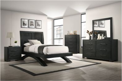 Sleek, edgy, and full of style, the York Bedroom collection is a gorgeous way to transform any bedroom into a high fashion sanctuary. Its sharp black finish and sleek panel headboard are alluring to the eye while it’s uniquely arched base legs give it a ultra-contemporary design.