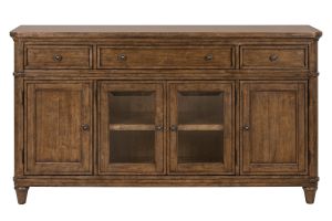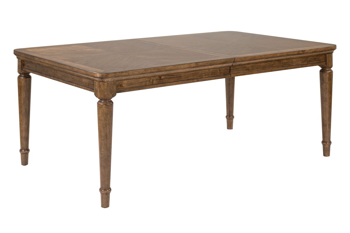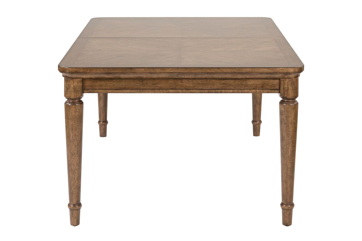 The Tuscany Collection brings timeless design and thoughtful craftsmanship to your dining space. Featuring softly rounded corners, saber chair legs, and subtle wood frame accents, each piece is rich in detail and comfort. Premium touches like antique brass knobs, felt-lined top drawers, and a removable silverware tray enhance function and elegance. A self-storing 18-inch leaf with an easy-glide track system and 4-way matched fancy face veneer add both beauty and versatility to every gathering.