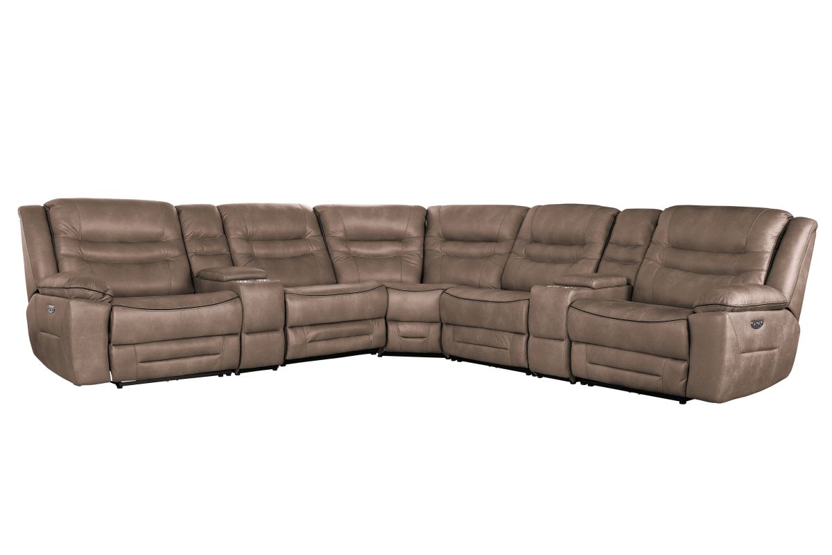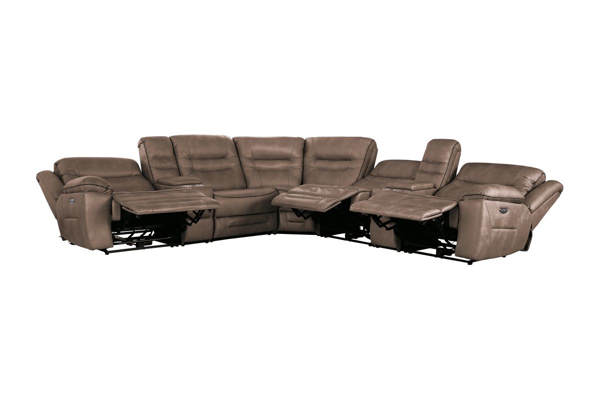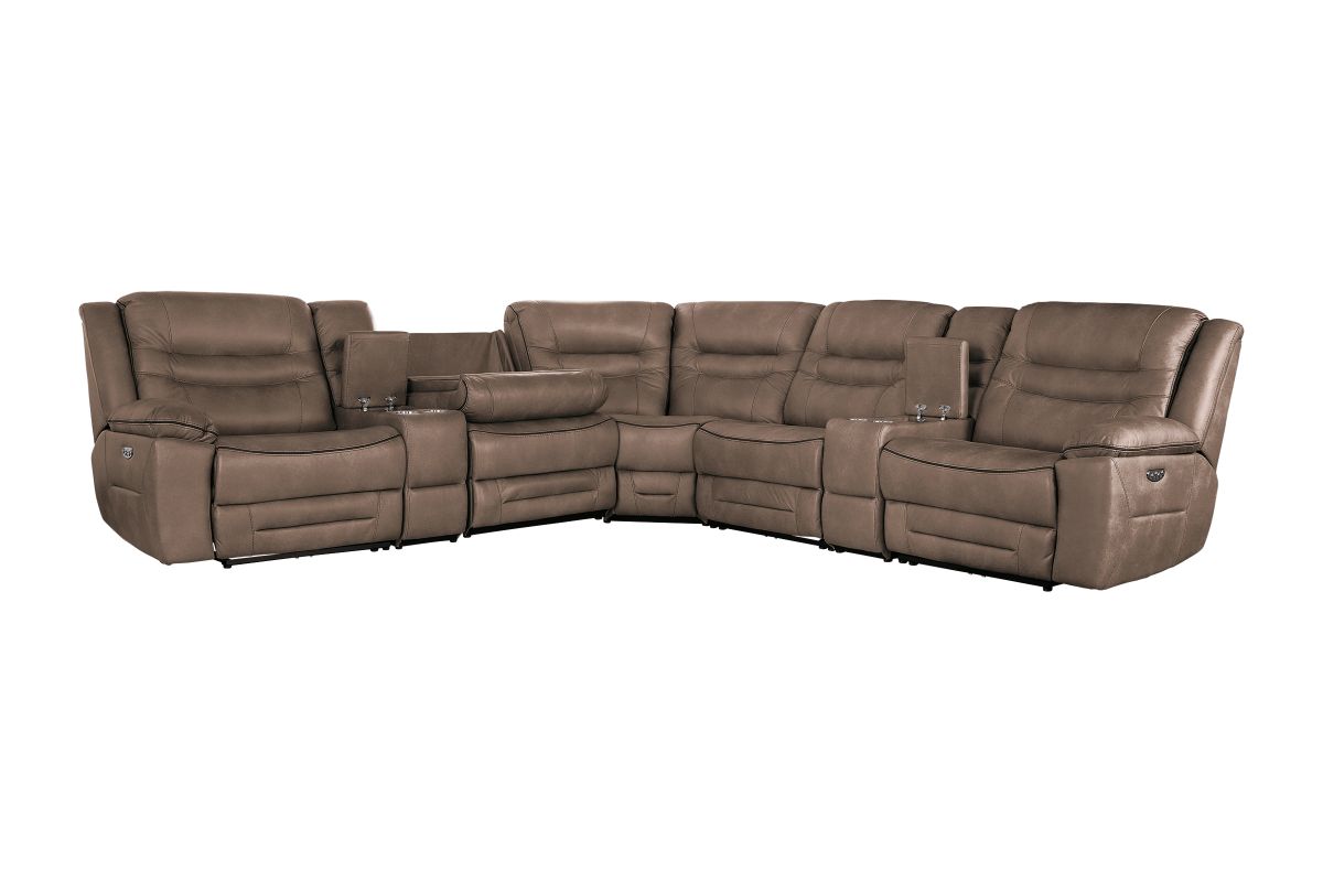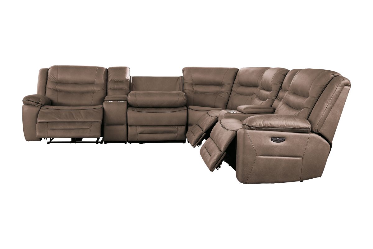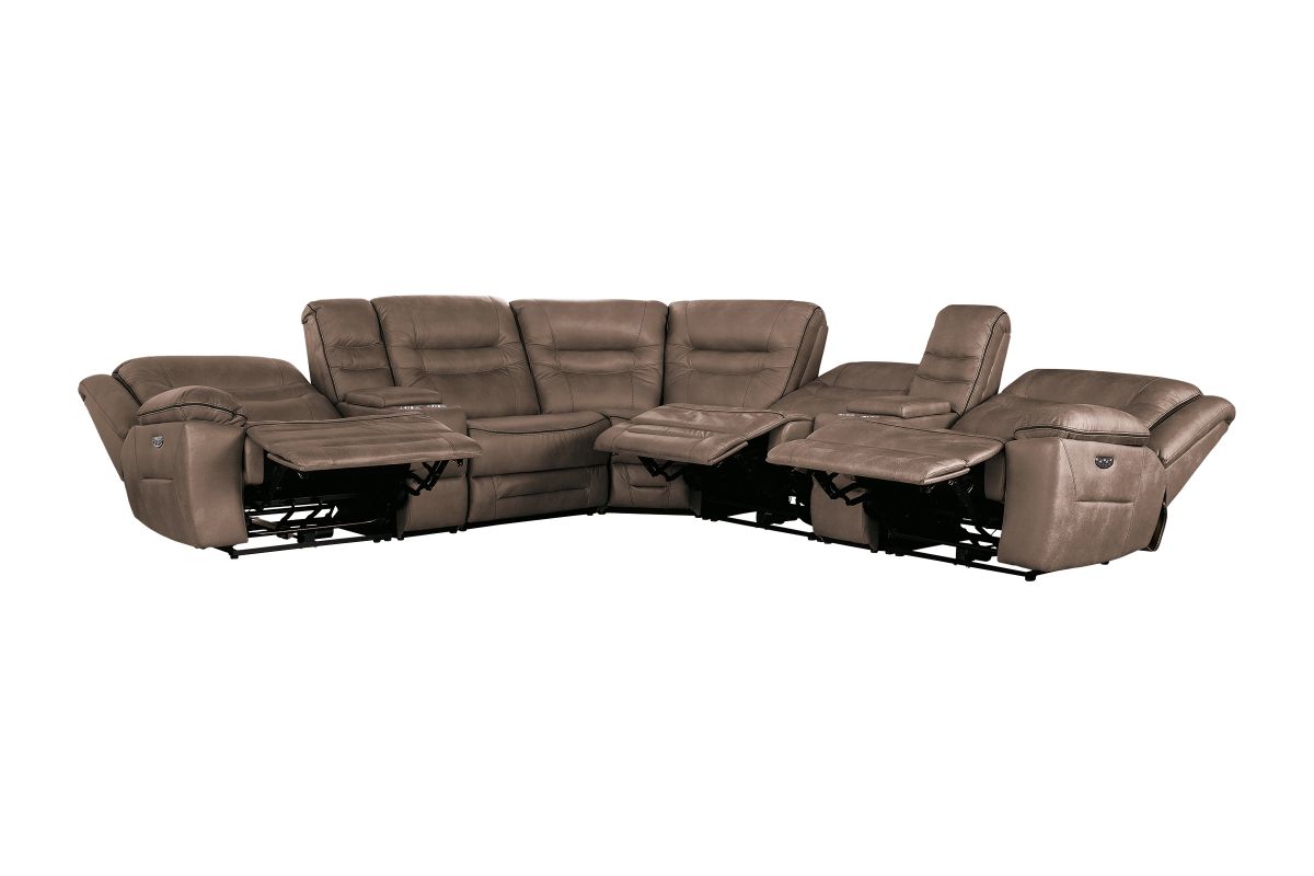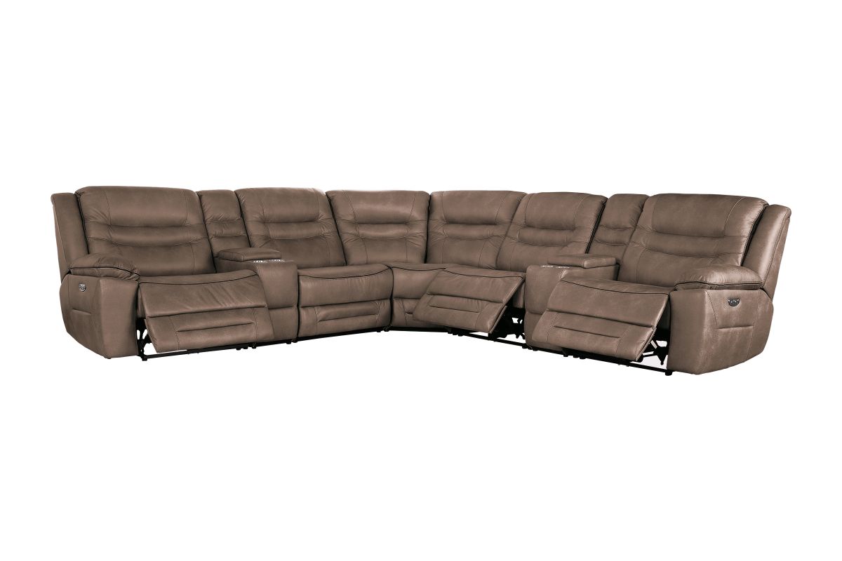 Upgrade your living space with the Rockford Brown Dual Power Reclining 7-Piece Sectional— where comfort meets innovation. Wrapped in soft, durable brown polyester upholstery, this sectional blends plush relaxation with sleek modern design.