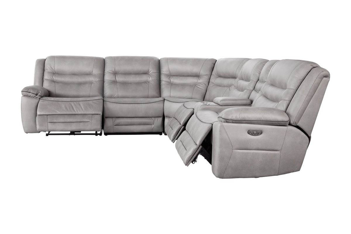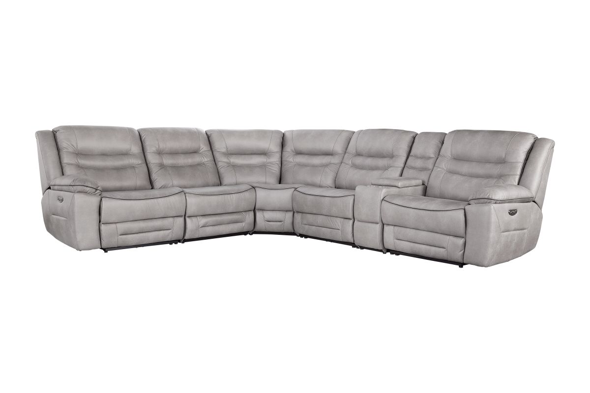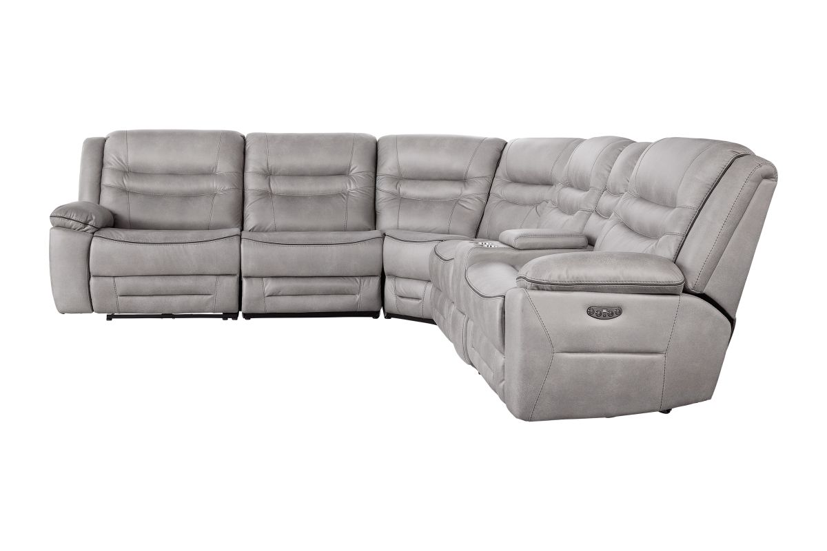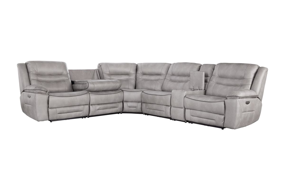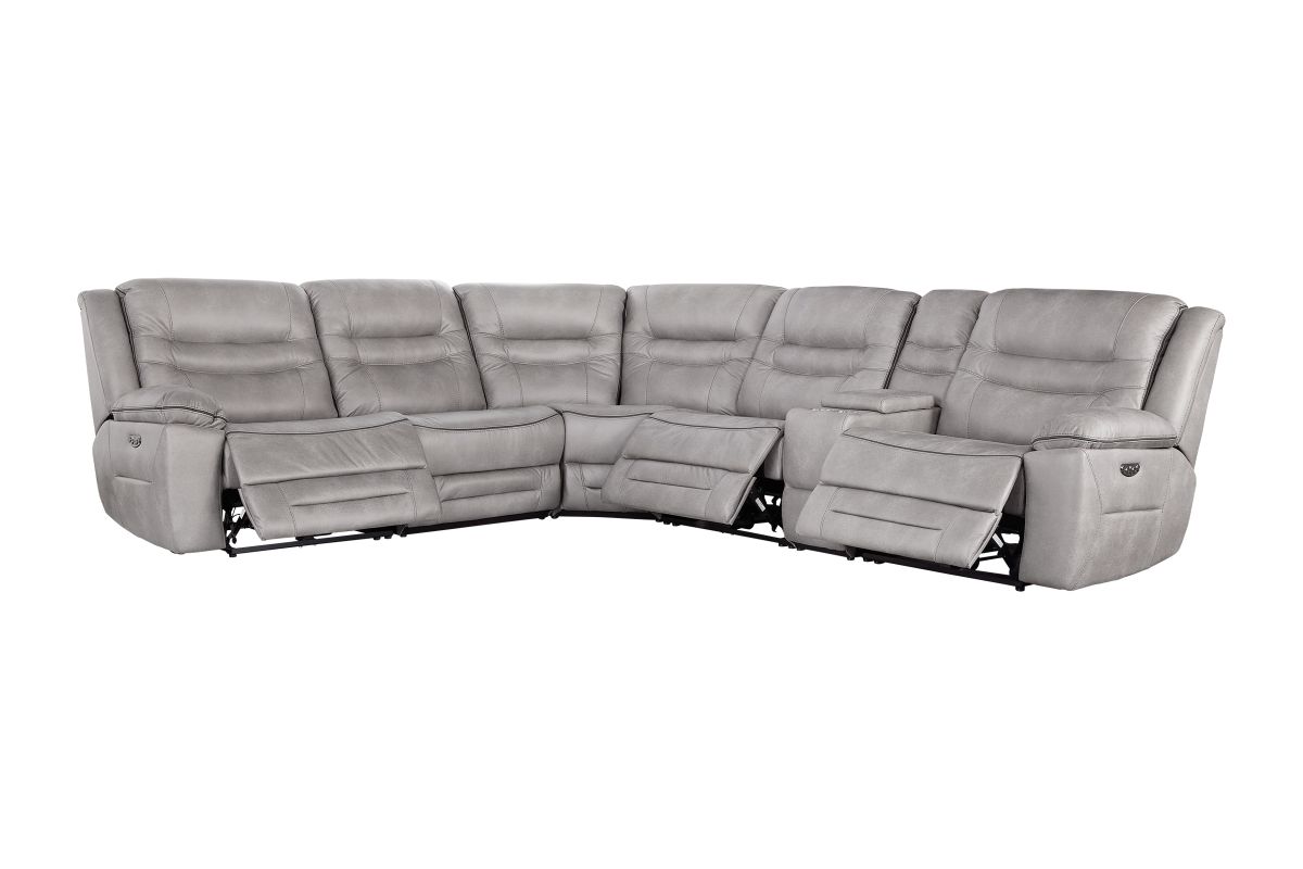 Upgrade your living space with the Rockford Grey Dual Power Reclining 6-Piece Sectional with Console— where comfort meets innovation. Wrapped in soft, durable grey polyester upholstery, this sectional blends plush relaxation with sleek modern design.