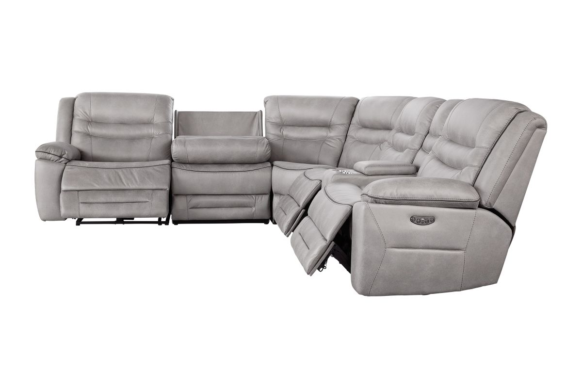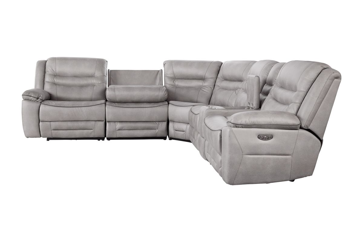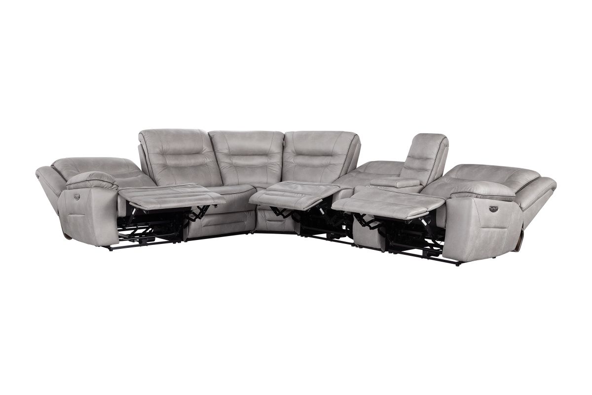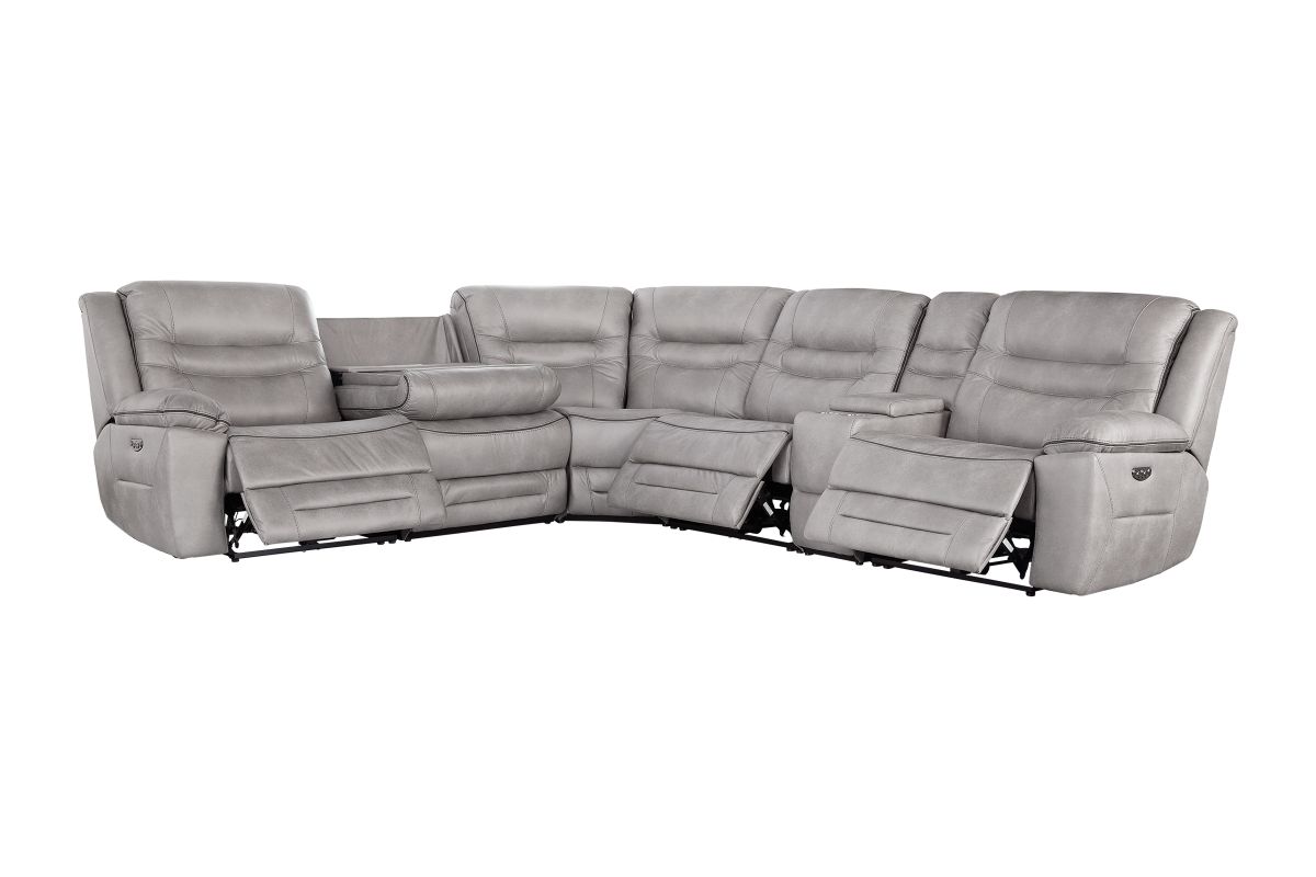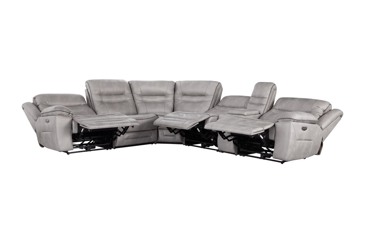 Upgrade your living space with the Rockford Grey Dual Power Reclining 6-Piece Sectional with Console— where comfort meets innovation. Wrapped in soft, durable grey polyester upholstery, this sectional blends plush relaxation with sleek modern design.