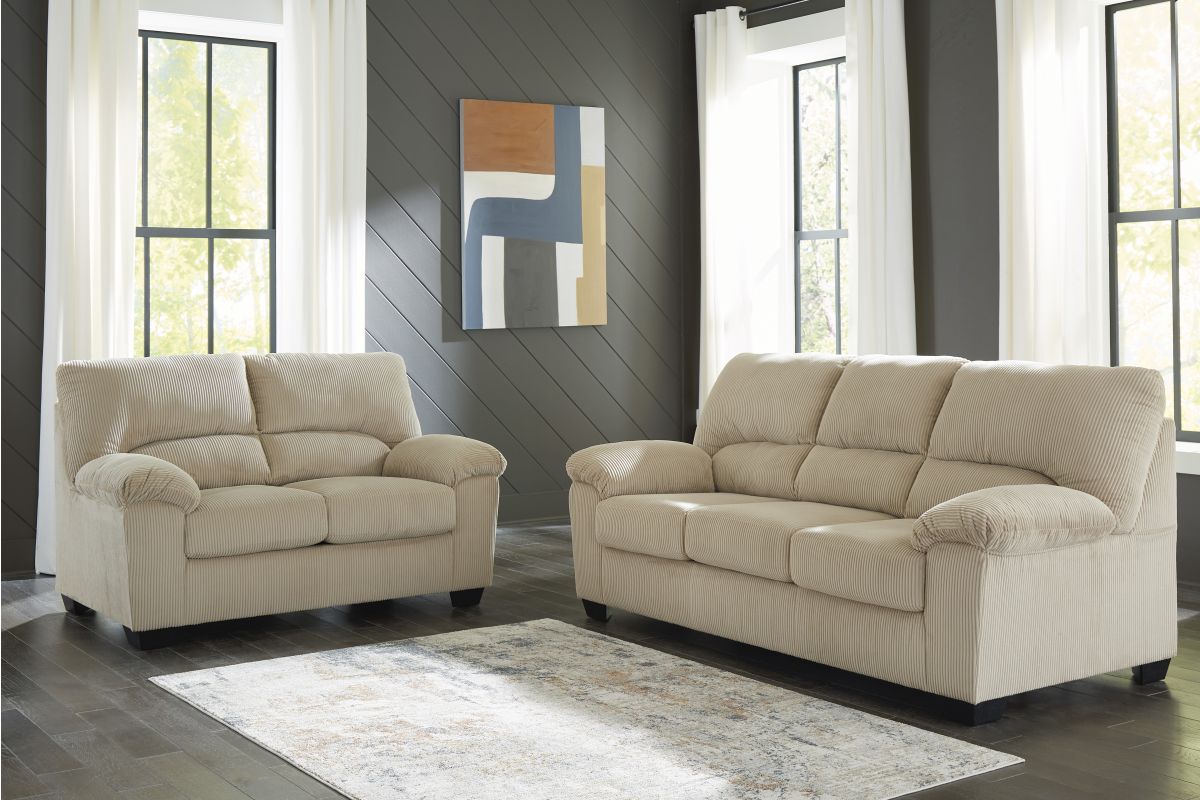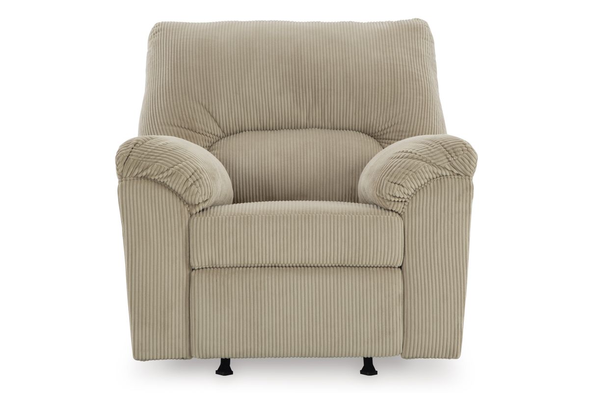 This collection is a cozy interpretation of casual contemporary style. Its super-soft corduroy makes curling up with a book or your favorite show that much more comfortable. You're sure to appreciate its sincere styling and homey approach to relaxation. Set Includes: SimpleJoy Sand Sofa, SimpleJoy Sand Loveseat, SimpleJoy Sand Rocker Recliner, and the Ardoline Occasional 3-PieceTable Set.