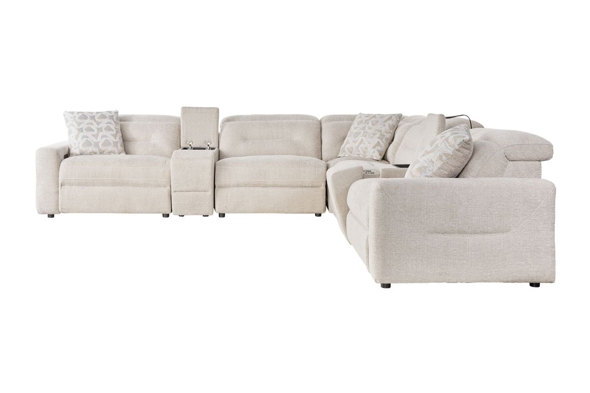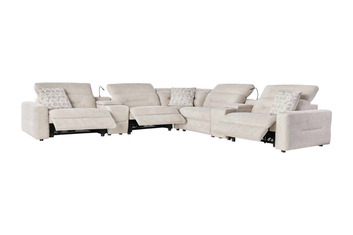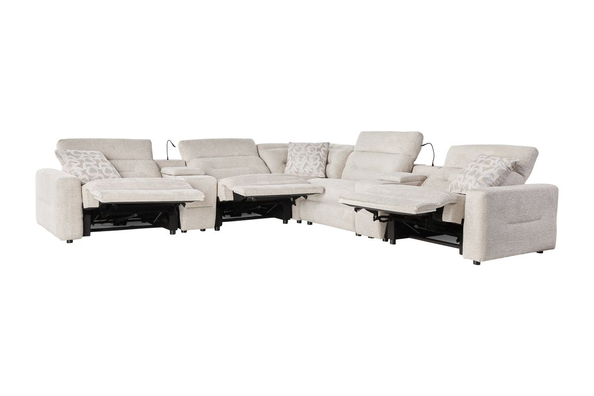 The Marin Dual Power Reclining 7-Piece Console Sectional captures the essence of contemporary casual living — where modern form meets plush, laid-back comfort. Designed with soft curves and a clean silhouette, it brings a sense of effortless sophistication to any living space. The textured neutral upholstery adds warmth and versatility, complementing everything from minimalist modern to transitional interiors.