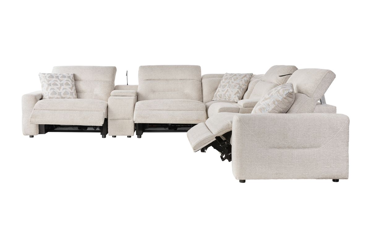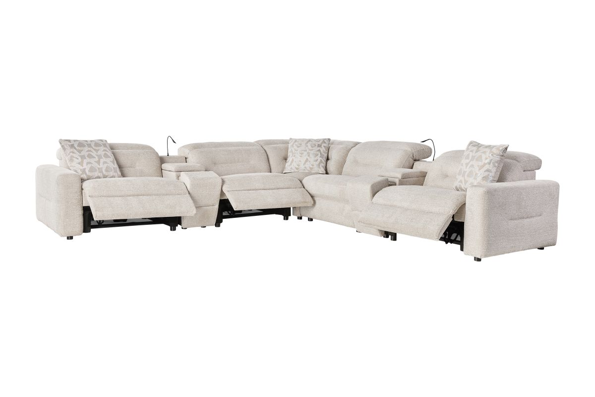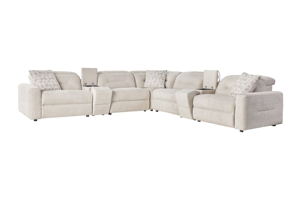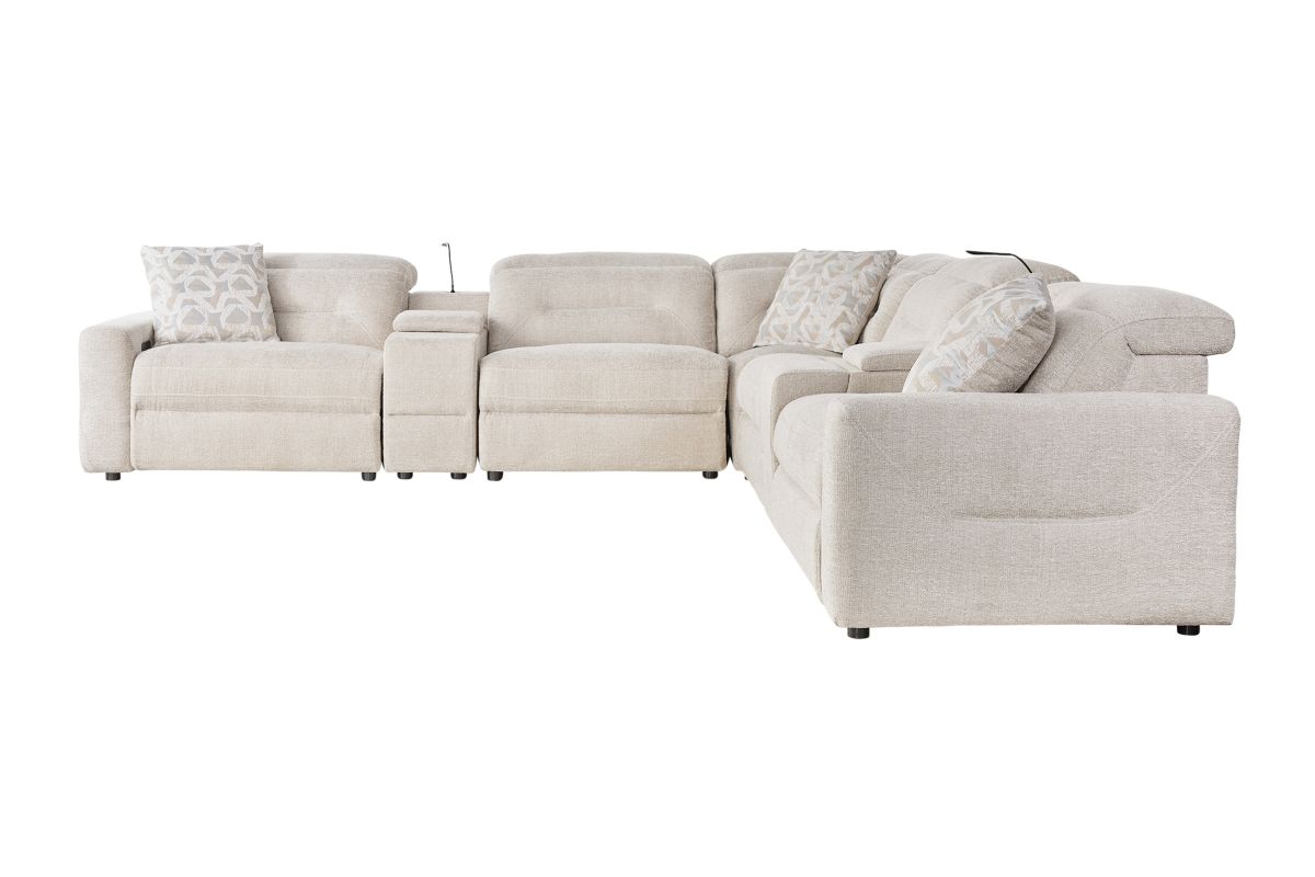 The Marin Dual Power Reclining 7-Piece Console Sectional captures the essence of contemporary casual living — where modern form meets plush, laid-back comfort. Designed with soft curves and a clean silhouette, it brings a sense of effortless sophistication to any living space. The textured neutral upholstery adds warmth and versatility, complementing everything from minimalist modern to transitional interiors.