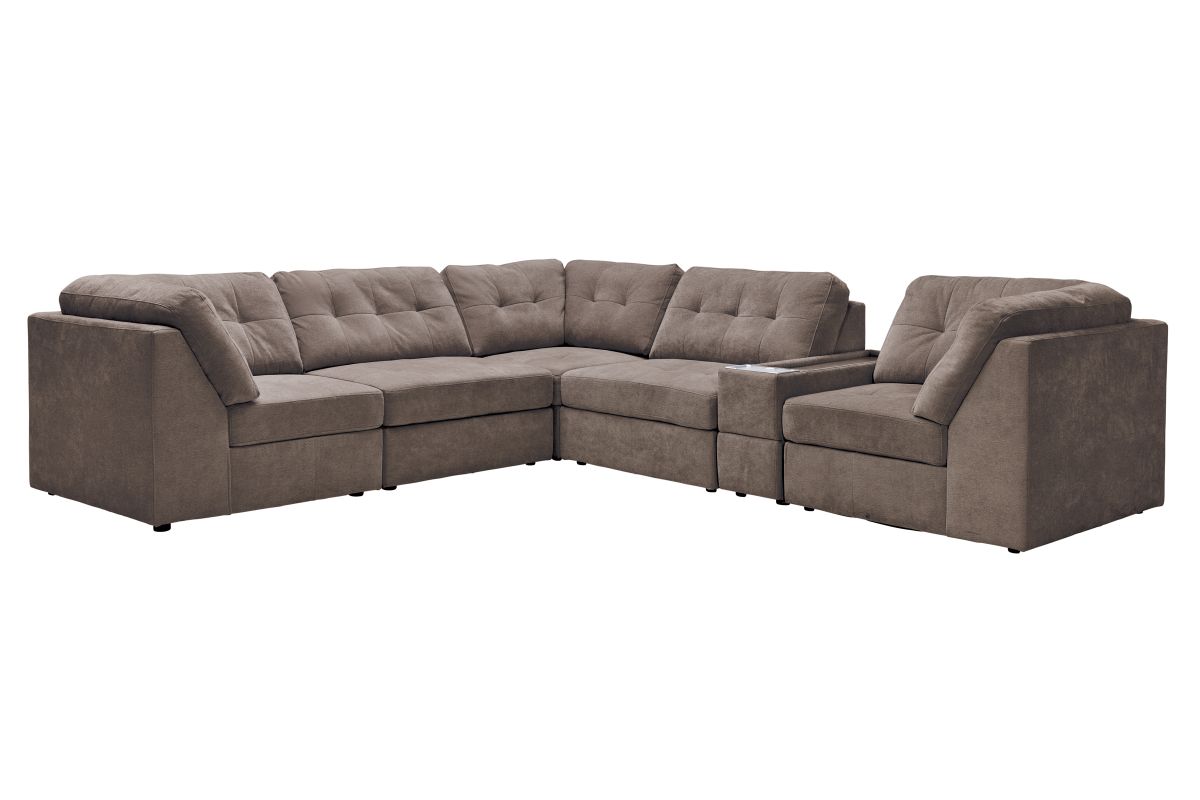 Discover the Rio Chocolate Sectional Collection, where modern style meets everyday comfort and technology. This modular 6-piece sectional is designed for versatility, allowing you to configure the perfect seating arrangement for your space and lifestyle. Wrapped in rich chocolate upholstery, it offers deep seating, plush cushions, and wide armrests for a luxurious lounging experience.