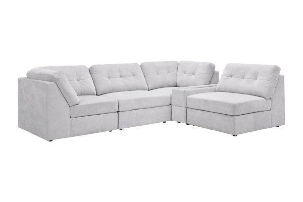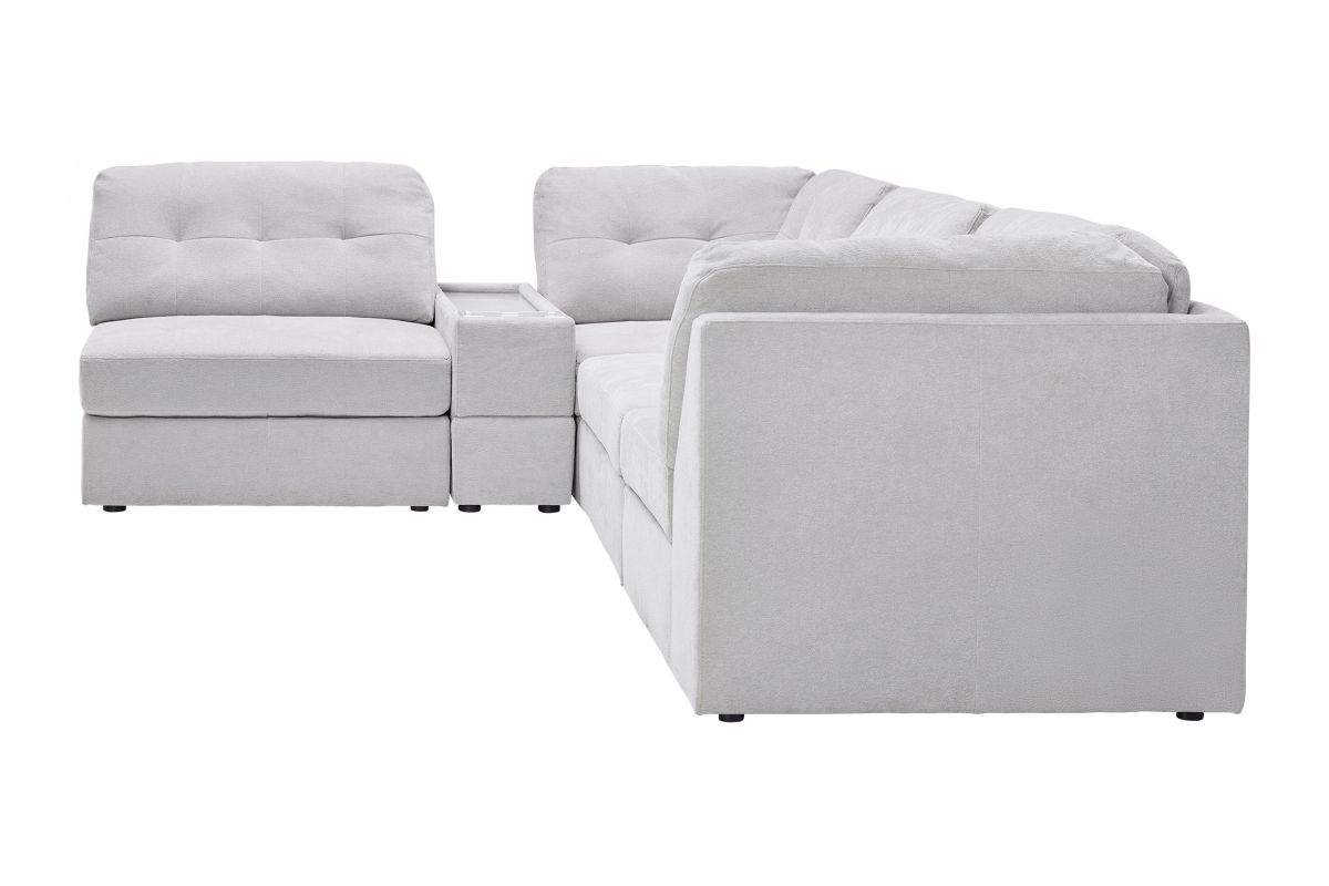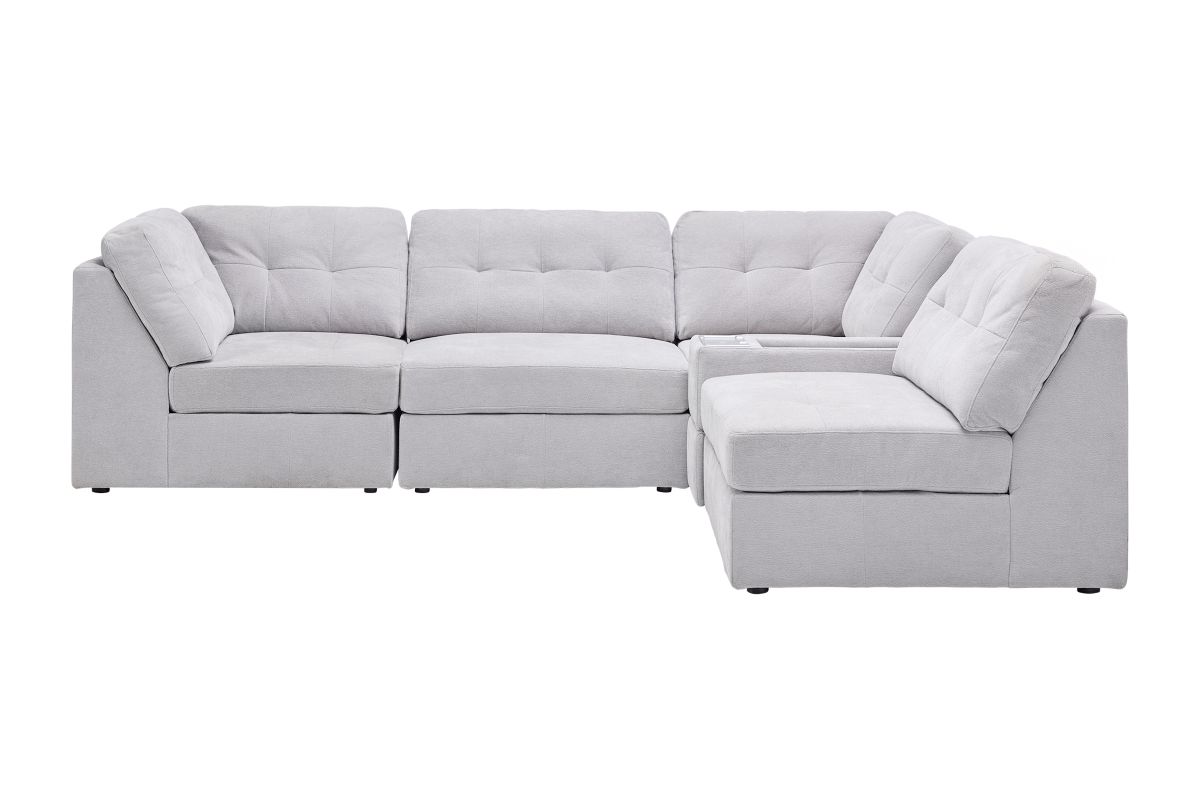 Discover the Rio Grey Sectional Collection, where modern style meets everyday comfort and technology. This modular 5-piece sectional is designed for versatility, allowing you to configure the perfect seating arrangement for your space and lifestyle. Wrapped in rich grey upholstery, it offers deep seating, plush cushions, and wide armrests for a luxurious lounging experience.