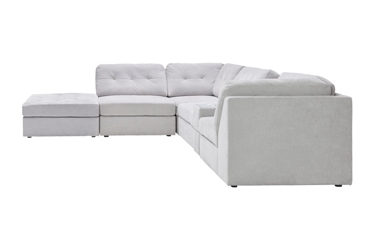Discover the Rio Grey Sectional Collection, where modern style meets everyday comfort and technology. This modular 6-piece sectional with ottoman is designed for versatility, allowing you to configure the perfect seating arrangement for your space and lifestyle. Wrapped in rich grey upholstery, it offers deep seating, plush cushions, and wide armrests for a luxurious lounging experience.