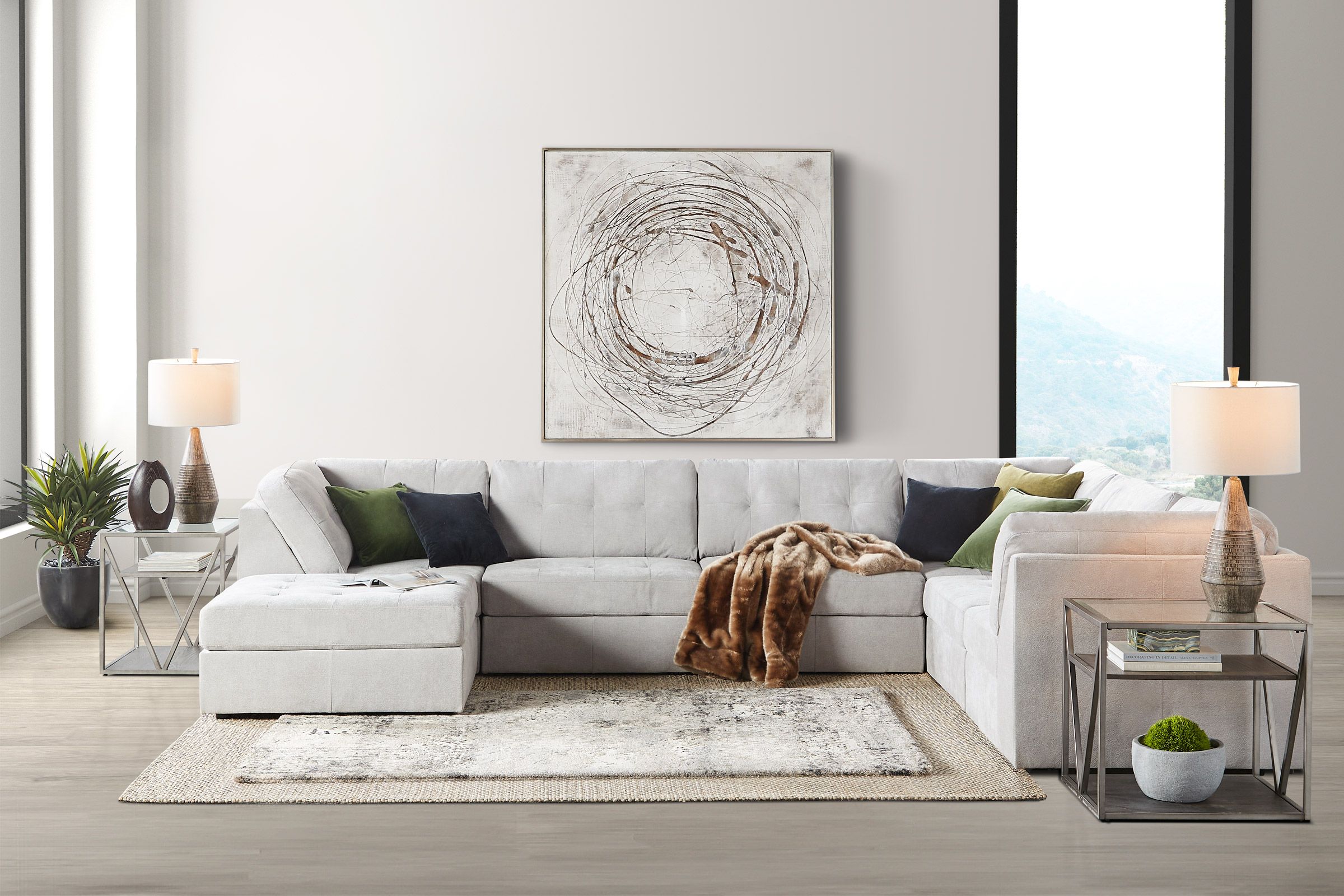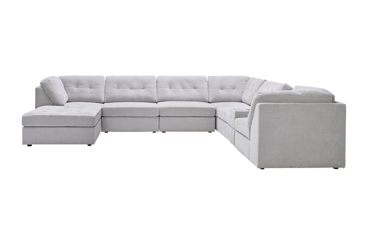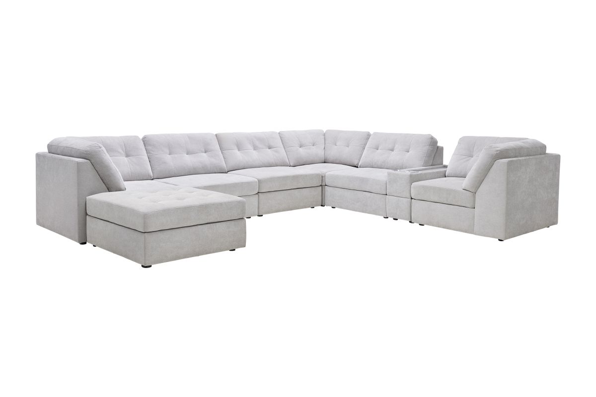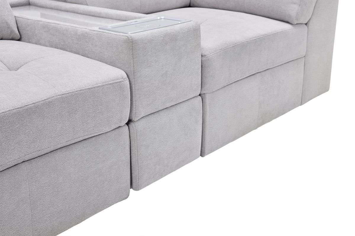 Discover the Rio Grey Sectional Collection, where modern style meets everyday comfort and technology. This modular 8-piece sectional with ottoman is designed for versatility, allowing you to configure the perfect seating arrangement for your space and lifestyle. Wrapped in rich grey upholstery, it offers deep seating, plush cushions, and wide armrests for a luxurious lounging experience.