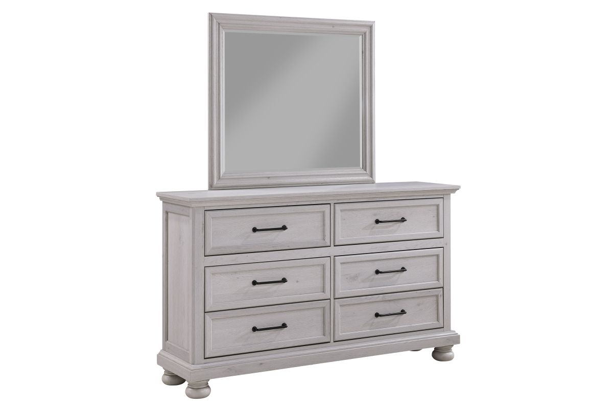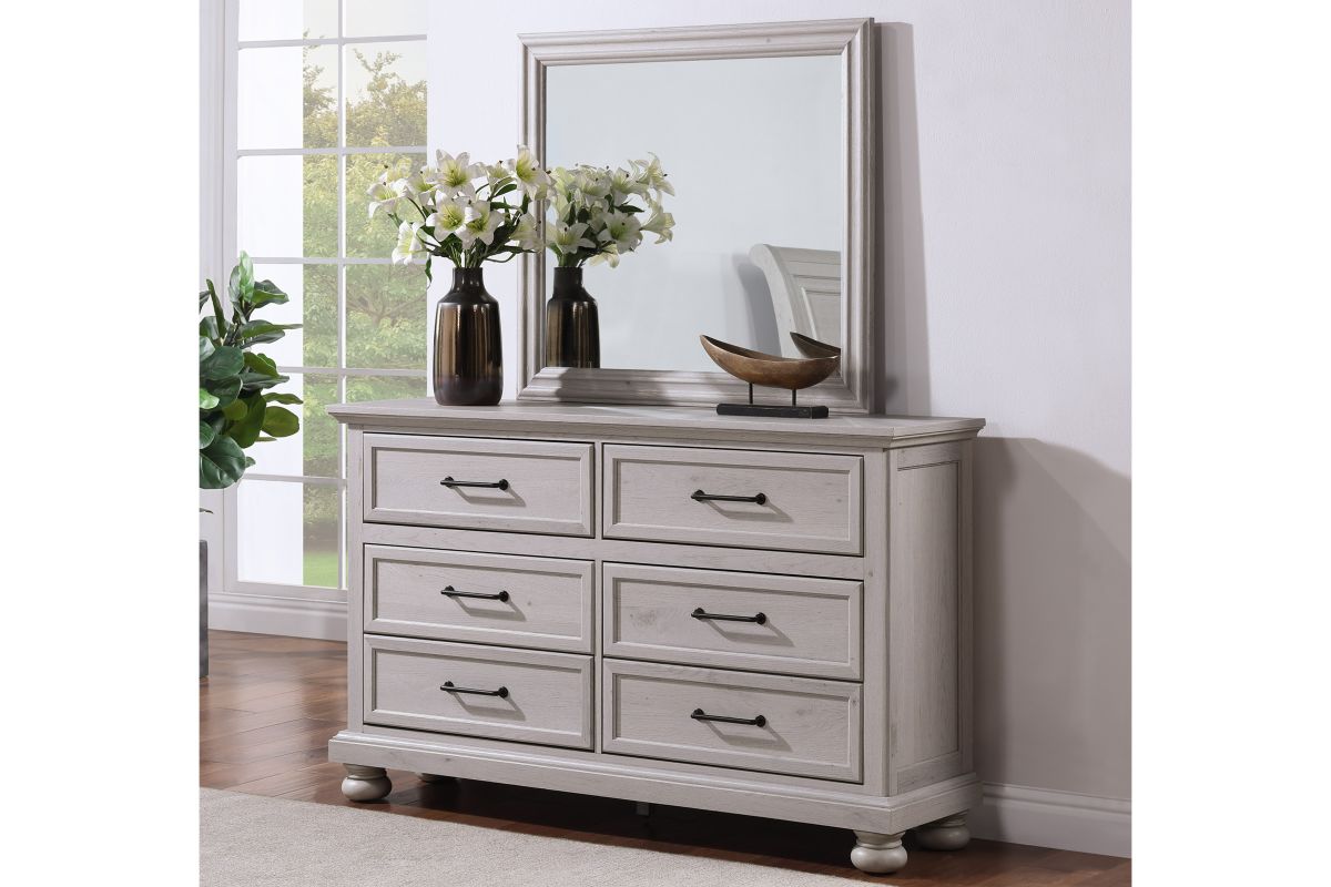 The Arthur Collection has a curved headboard offers a classic, elegant silhouette, with two spacious drawers built into the footboard provide extra storage for linens or seasonal clothing. Includes a dresser with mirror all featuring coordinated hardware and bun feet.