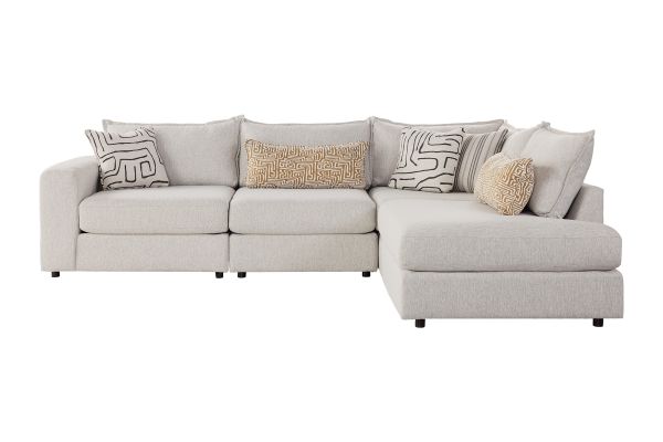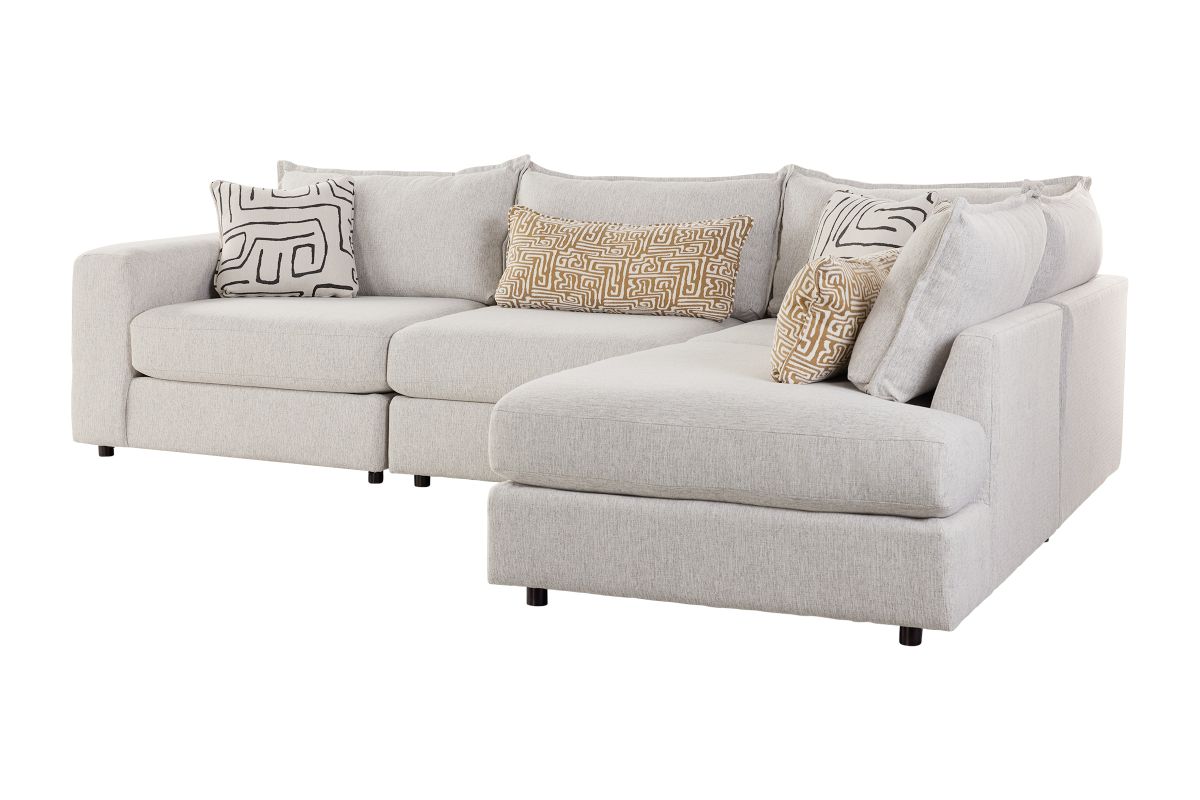 Bring modern comfort into your home with the Dream 4-Piece Sectional. Designed with a right arm facing bump chaise, this sectional provides plenty of room to lounge, gather, and relax while keeping a sleek, contemporary look. Wrapped in performance fabric, this sectional is both family-friendly and stylish, offering durability that stands up to everyday use while remaining soft and inviting. With its modular design, the Dream sectional adapts seamlessly to your space, making it perfect for entertaining or simply unwinding at the end of the day. Practical, durable, and tech-savvy, the Dream 4-Piece Sectional with RIght Arm Facing Chaise is built for today’s lifestyle.