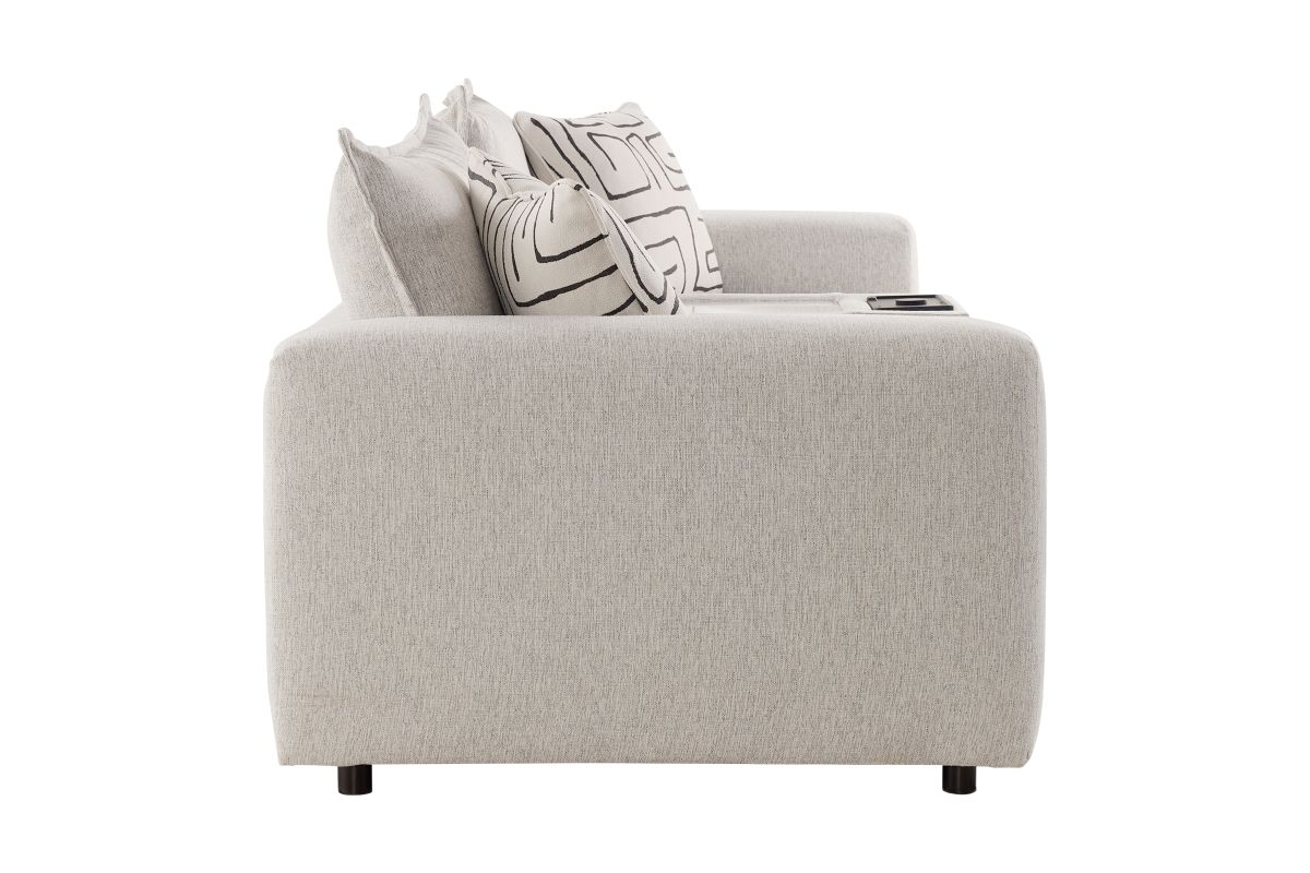 The Dream Console Loveseat brings together modern comfort and smart functionality, making it the perfect centerpiece for today’s living spaces. Designed with plush cushions and durable performance fabric, it offers everyday comfort while standing up to life’s demands. The built-in console takes relaxation to the next level with wireless charging, USB ports, and a Bluetooth speaker, keeping you connected and entertained without leaving your seat.