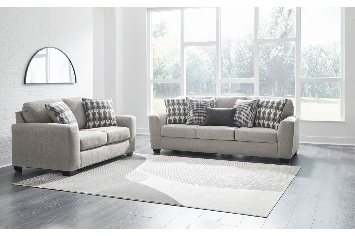 Wrapped in textured flannel-gray polyester, the Avenal Park collection brings tactile charm to clean, contemporary design. Loose seat cushions, cozy piping, and crisp lines combine to deliver everyday elegance with welcoming comfort. Assembly required.