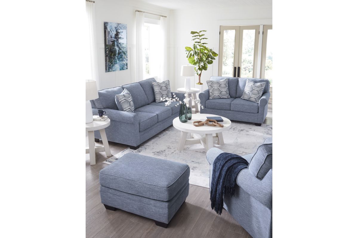 Casual yet chic, this denim-blue collection hints at cozy toughness. Soft, textured upholstery in a relaxed silhouette—complete with plush pillows and supportive cushioning—makes it perfect for casual elegance and stone‑washed comfort with a style edge. Assembly required.
