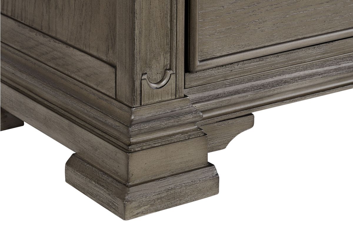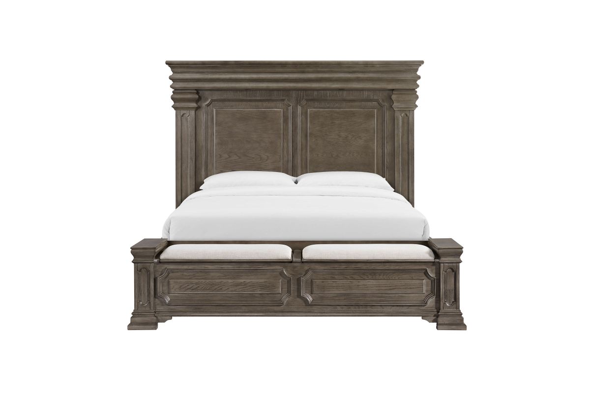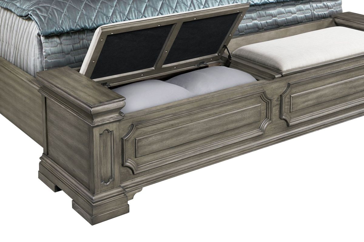 Transform your bedroom into a sophisticated sanctuary with the Radcliff King Storage Bedroom Set. This set features refined molding, giving it an elegant and timeless look. The high headboard adds a touch of grandeur to your space, while the touch-button mood-lighting in the headboard creates a relaxing ambiance. With two USB ports conveniently located in the headboard, you can easily charge your devices while lounging in bed. The black felt lined top drawers of all the case pieces provide a luxurious touch, and the nightstand sliding top with hidden storage offers safe keeping of your valuables. Finished with cedar veneer bottom drawers, this set combines style and durability for long-lasting use.