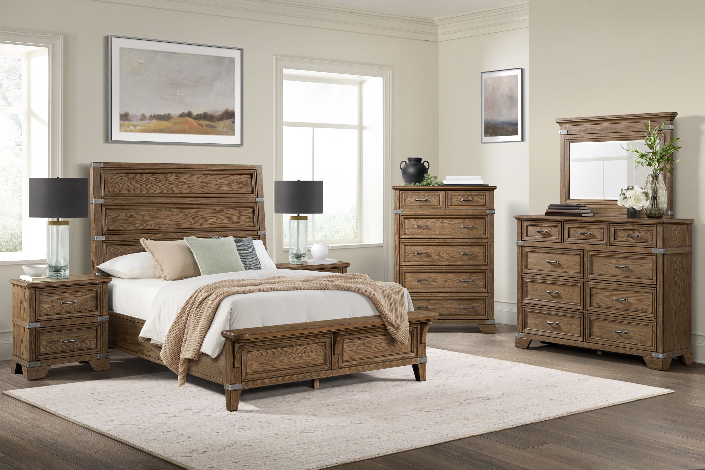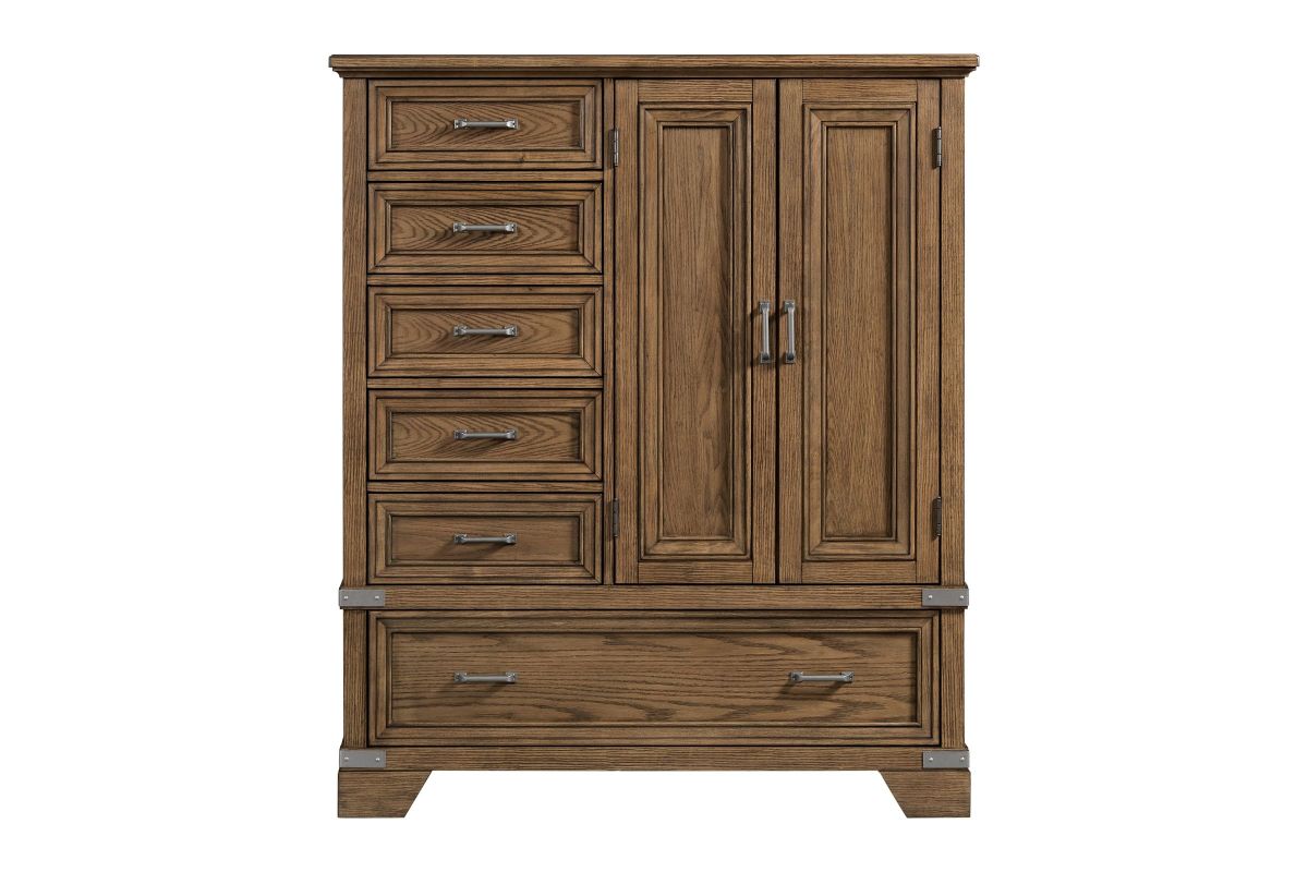 The Forge Bedroom Collection offers transitional styling with its strong metal aged iron accents and smooth Steel finish, perfectly highlighting the natural beauty of the oak grain. Quality construction, functional organization and innovated features throughout the set makes this timeless bedroom collection one you will enjoy for years to come.