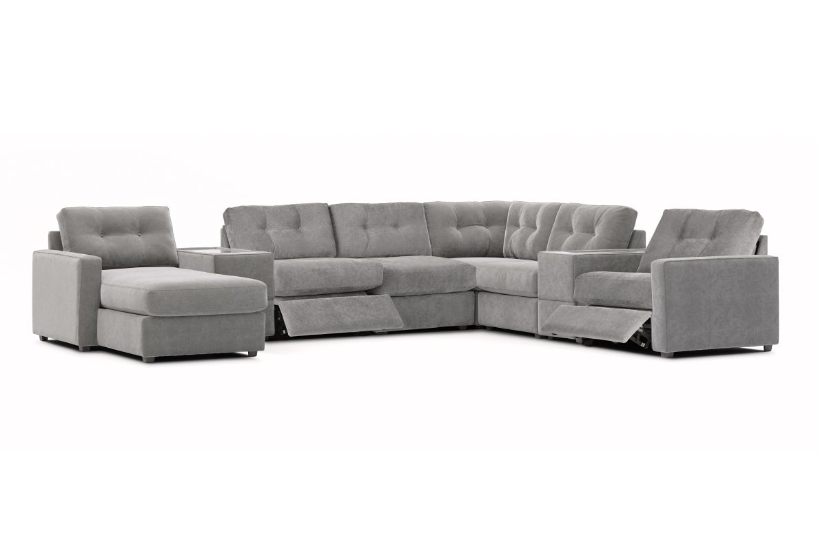 Discover the limitless possibilities of the Modular One Power Reclining Sectional, thoughtfully designed with comfort, flexibility, and modern convenience in mind. This customizable seating solution features individual pieces that can be rearranged to fit your space and lifestyle. Game days, movie nights, sleepovers, and everyday relaxation all feel better when your sectional adjusts to you—now with the added comfort of power reclining for effortless lounging at the touch of a button.