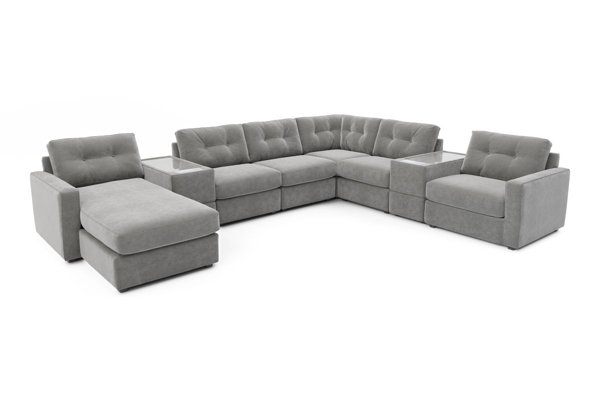 ModularOne Granite 8-Piece Power Reclining Sectional with Two E-Consoles & Left Arm Facing Chaise