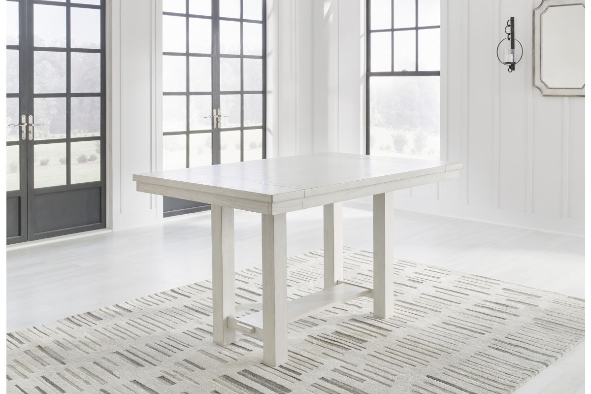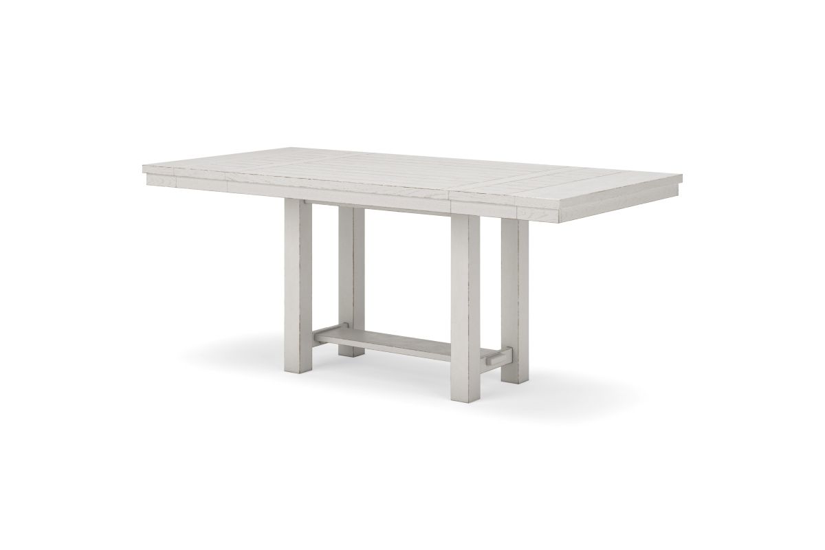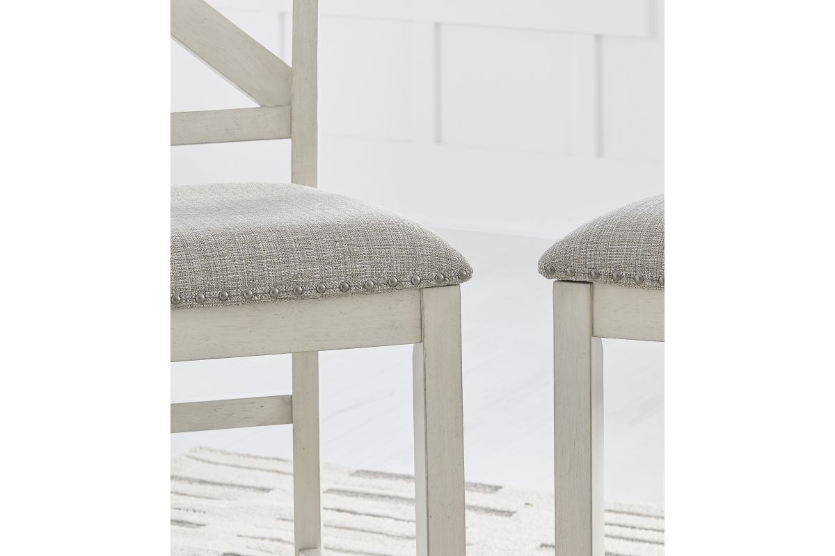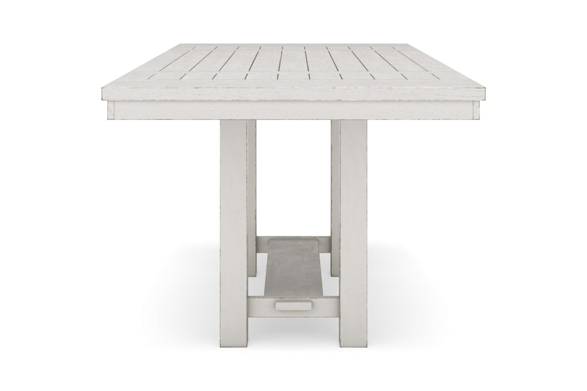 This dining package is sure to impress come mealtime. With its antiqued white finish and a planked effect tabletop, farmhouse-style dining has never been so fashionable. All that’s missing is you and your family.