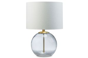 - Lamp is made of glass and metal with drum hardback fabric shade