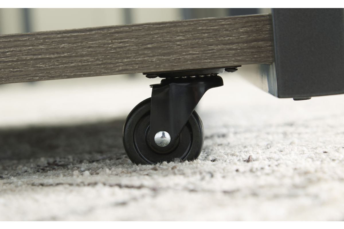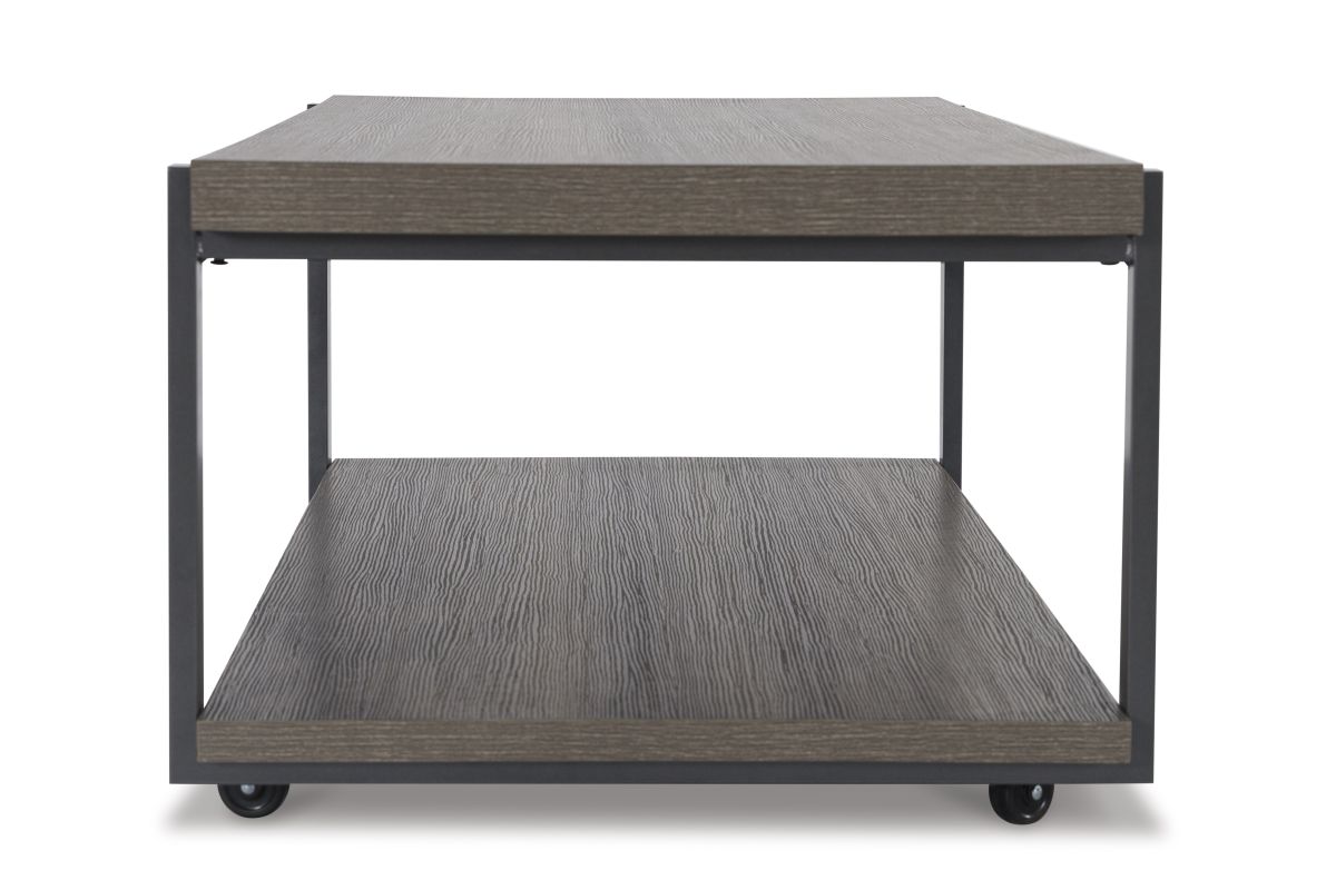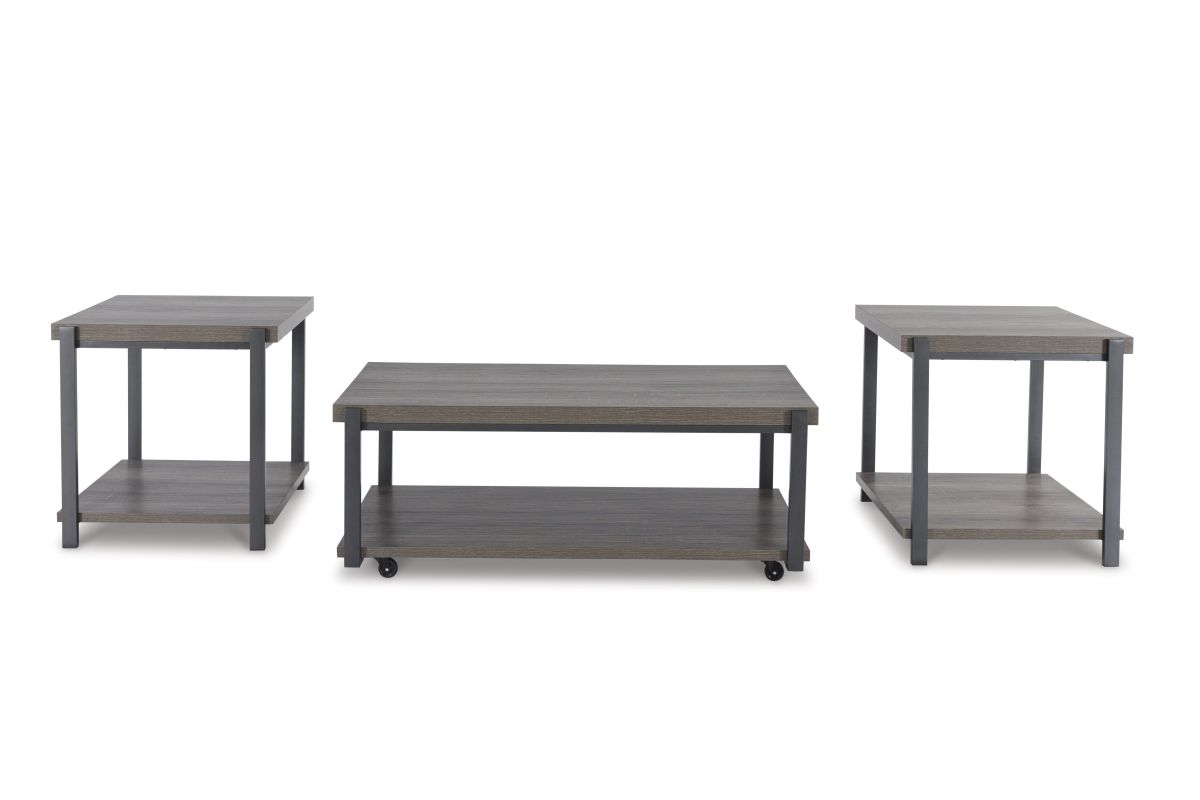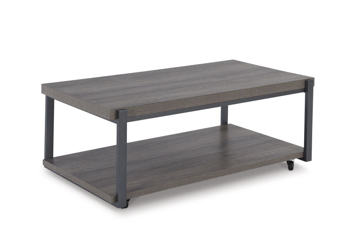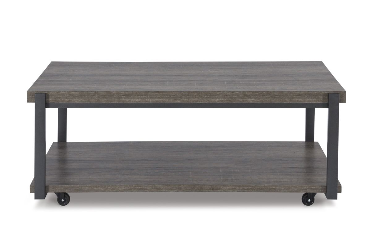 A cohesive, casual contemporary ensemble. This table set is equal parts sleek form and routine practicality. If you're hosting guests or need space to stretch out in a recliner, rolling casters on the coffee table clear up extra floor space in a snap. Each table is outfitted with a lower shelf for chic storage and displaying decor.