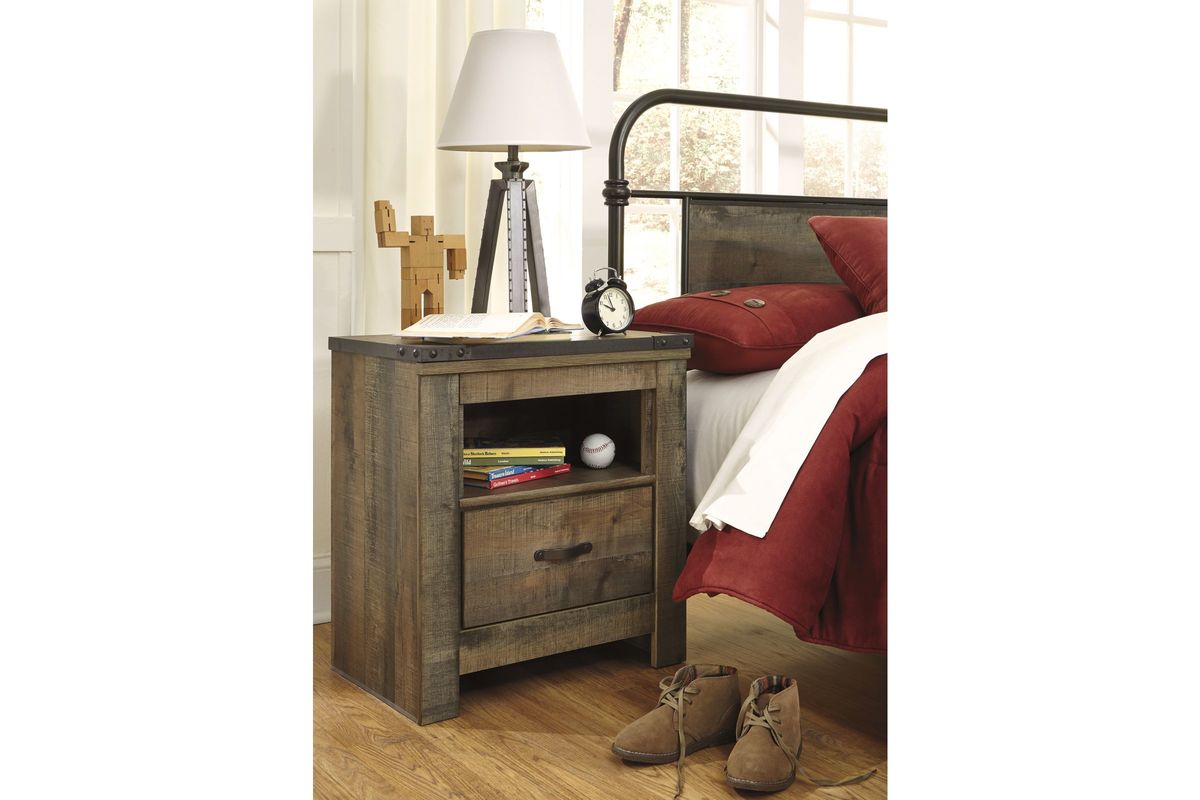 Whether she loves horses or he's a cowboy at heart, this nightstand matches their authenticity. Rustic finish, plank-style details and nailhead trim pay homage to reclaimed barn wood, making for a chic look loaded with charm. A built-in charging station for tablets, cellphones and other electronics offers an up-to-date convenience.