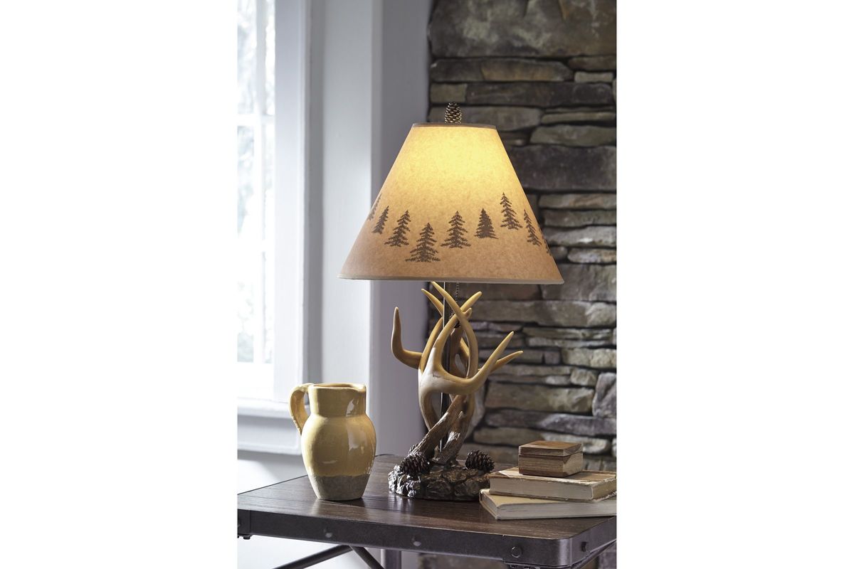 Bring home an upscale touch of mountain retreat style with this richly rustic table lamp. Amazing how a rugged mix of rock, antler and pinecone accents looks so beautifully refined in the right setting.