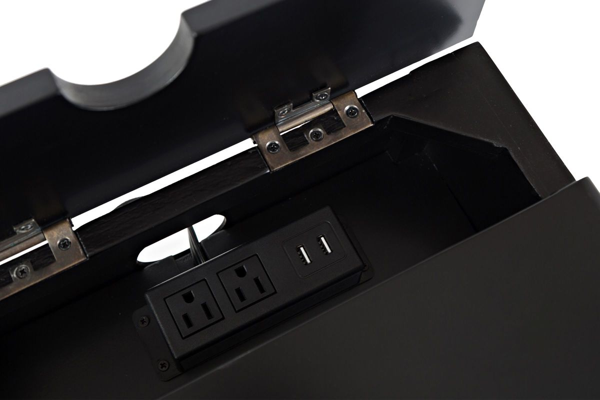 This power chairside table is as useful as it is beautiful. It looks incredible with a carefully aged finish, cabinet door fretwork, and antique hardware, but it's the hidden charger and easy storage that makes it a real treasure. Charge your tablet and plug in a lamp without have a tangle of cords. Power Unit has two outlets and two USB ports.