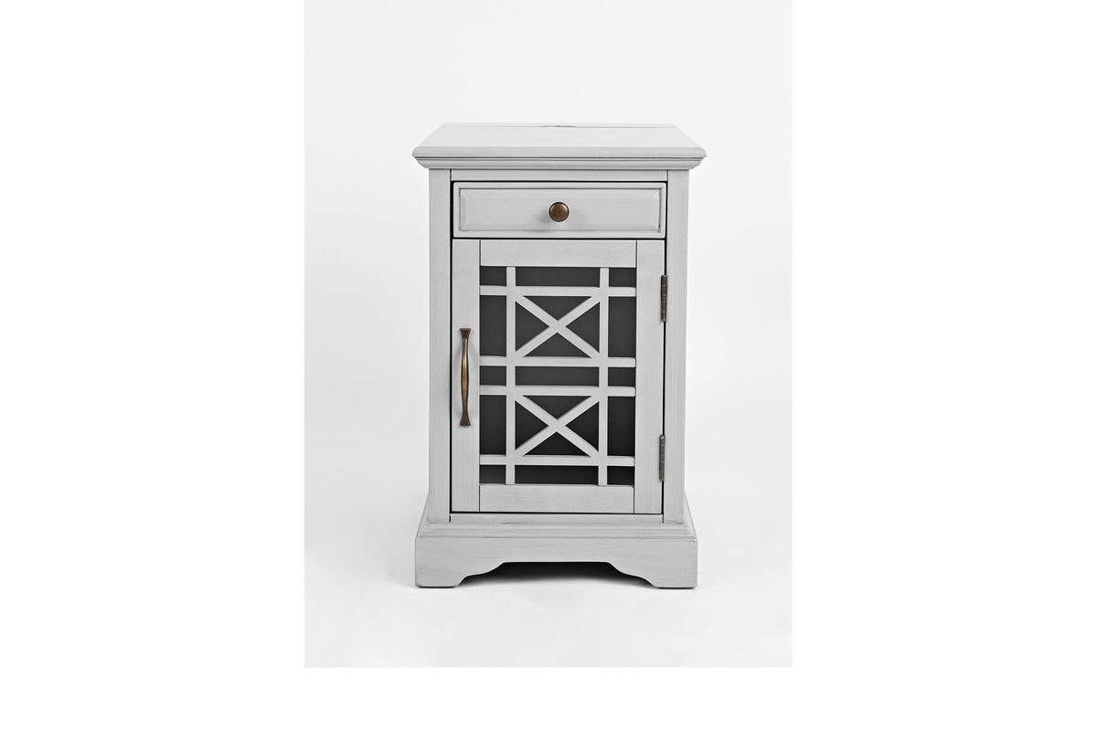 This power chairside table is as useful as it is beautiful. It looks incredible with a carefully aged finish, cabinet door fretwork, and antique hardware, but it's the hidden charger and easy storage that makes it a real treasure. Charge your tablet and plug in a lamp without have a tangle of cords. Power Unit has two outlets and two USB ports.