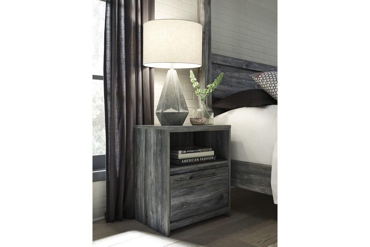Beachy style and room for bedside essentials go hand in hand with this nightstand. Its driftwood and surfer-inspired smokey finish creates a rustic look that's perfect for setting the scene of an island getaway. You’ll find the drawer and cubby to be spacious. Clean lines and modern handles provide an authentic look to be admired for years to come.