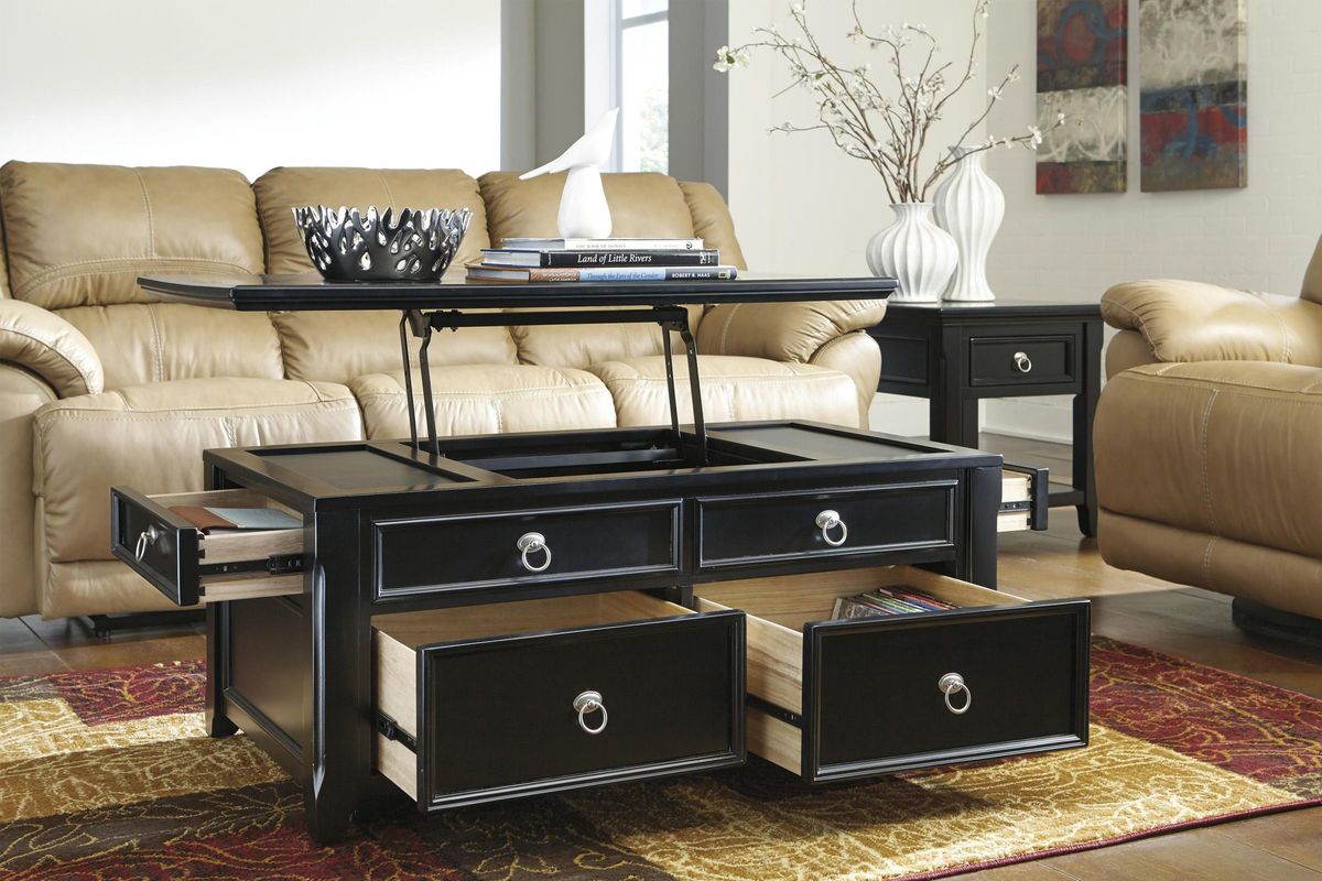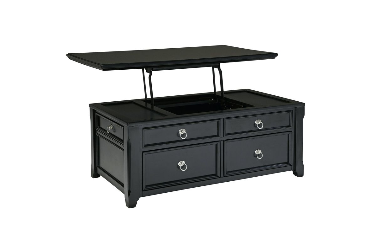 With a rich black paint finish that beautifully covers the framed detailing along with brushed nickel color hardware, the Black Lift-Top Cocktail Table creates the perfect example of vintage casual design while giving you ample storage and function to further enhance your living area.