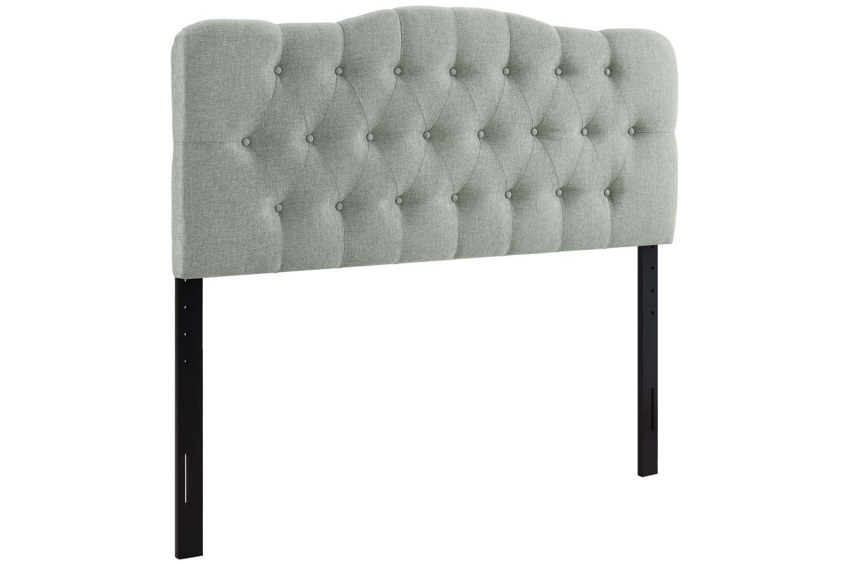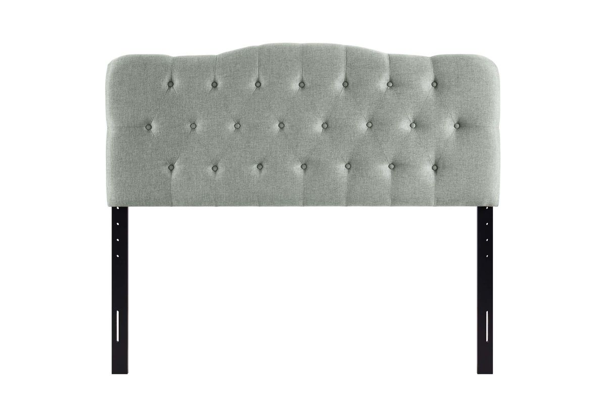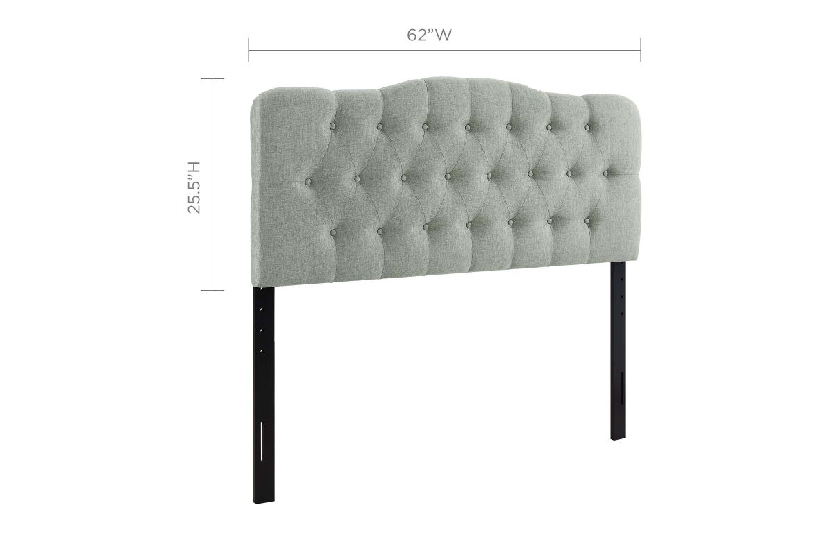 Instill soft tones and a meaningful design with the Annabel tufted arch headboard. Deep inset buttons adorn this magnificent centerpiece for your bedroom decor. Annabel is made from fiberboard, plywood and fine polyester upholstering for a construction that is both lightweight and long-lasting. Carefully crafted with flowing contours and a richly rewarding design, sleep peacefully while supported by this exceptional headboard. Fits queen size beds.