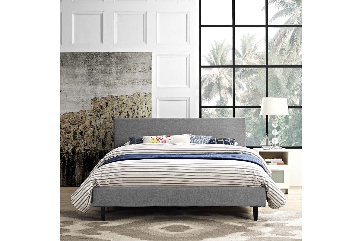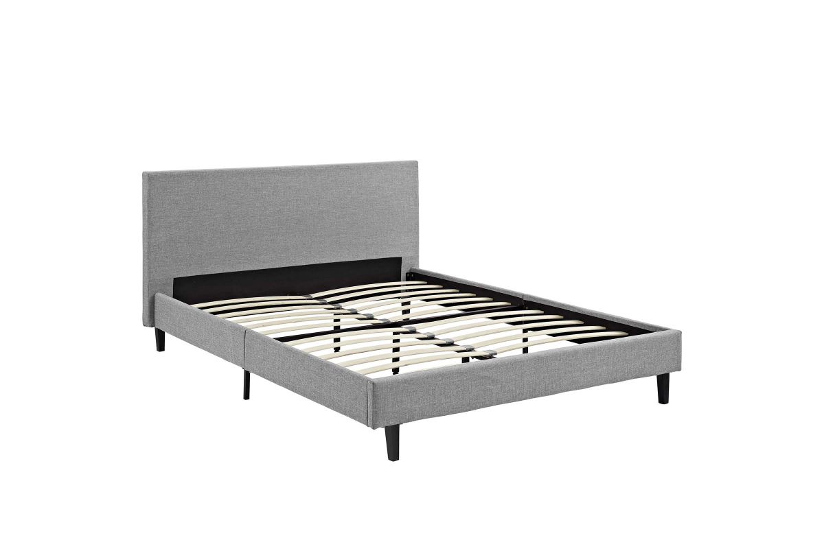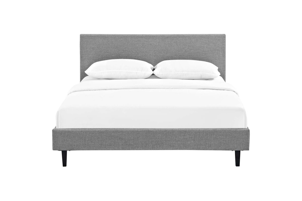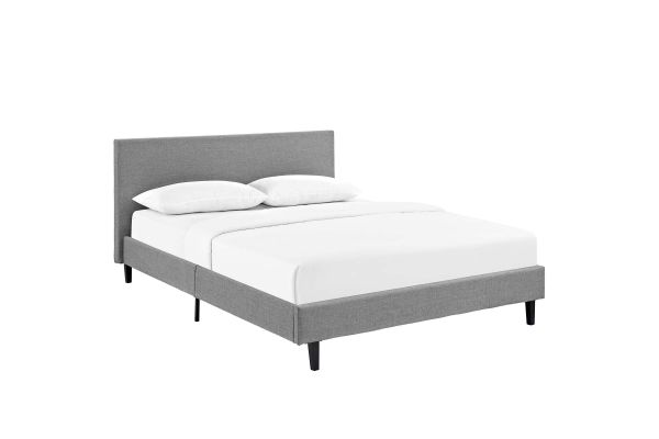 Restyle your bedroom decor with the Anya Platform Bed. Designed with a chic avant-garde look, Anya comes with an upholstered polyester fabric base and headboard, solid wood legs, and a slatted wood support system that eliminates the need for a box spring. Complete with a reinforced center beam with supporting legs for maximum stability, Anya accommodates the various mattress types on the market such as memory foam, spring, latex and hybrid. A sleek and striking centerpiece to your bedroom, Anya is a quality modern bed poised to thoroughly transform your space. Weight capacity up to 1300 lbs. Mattress Not Included.