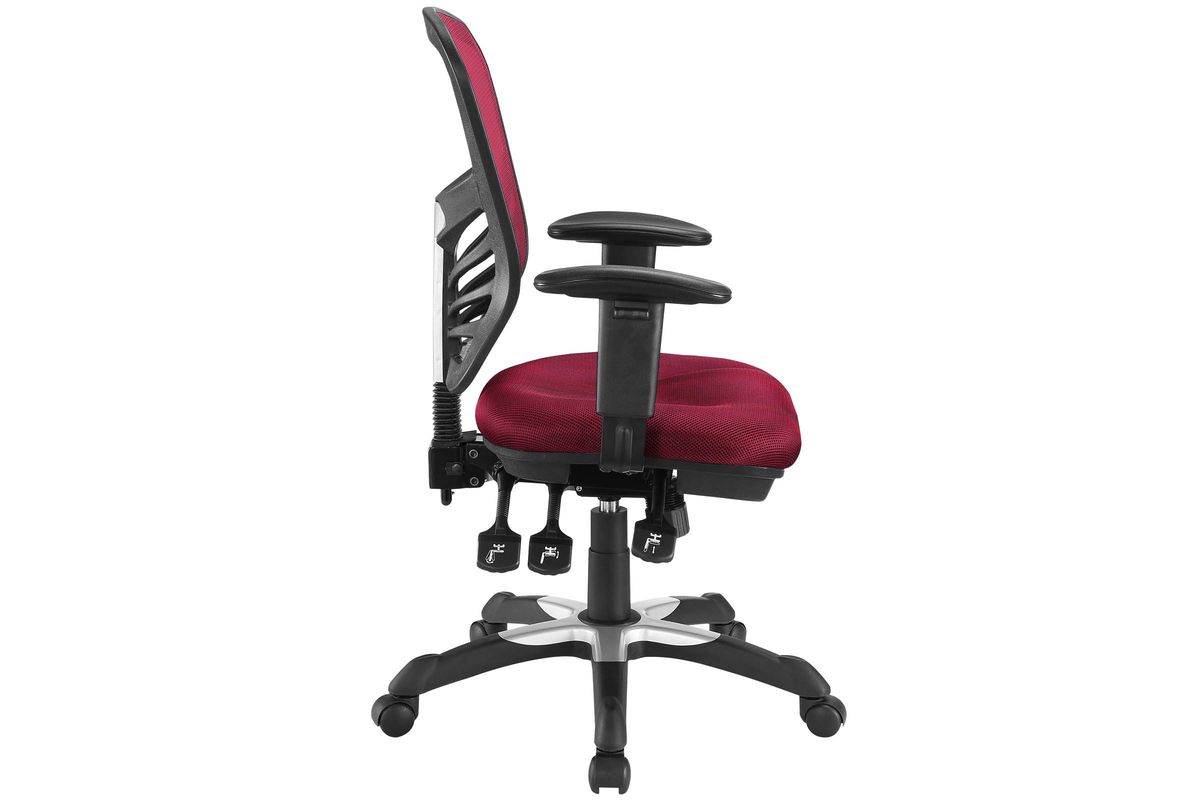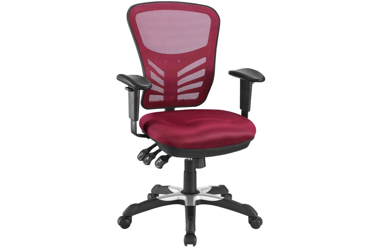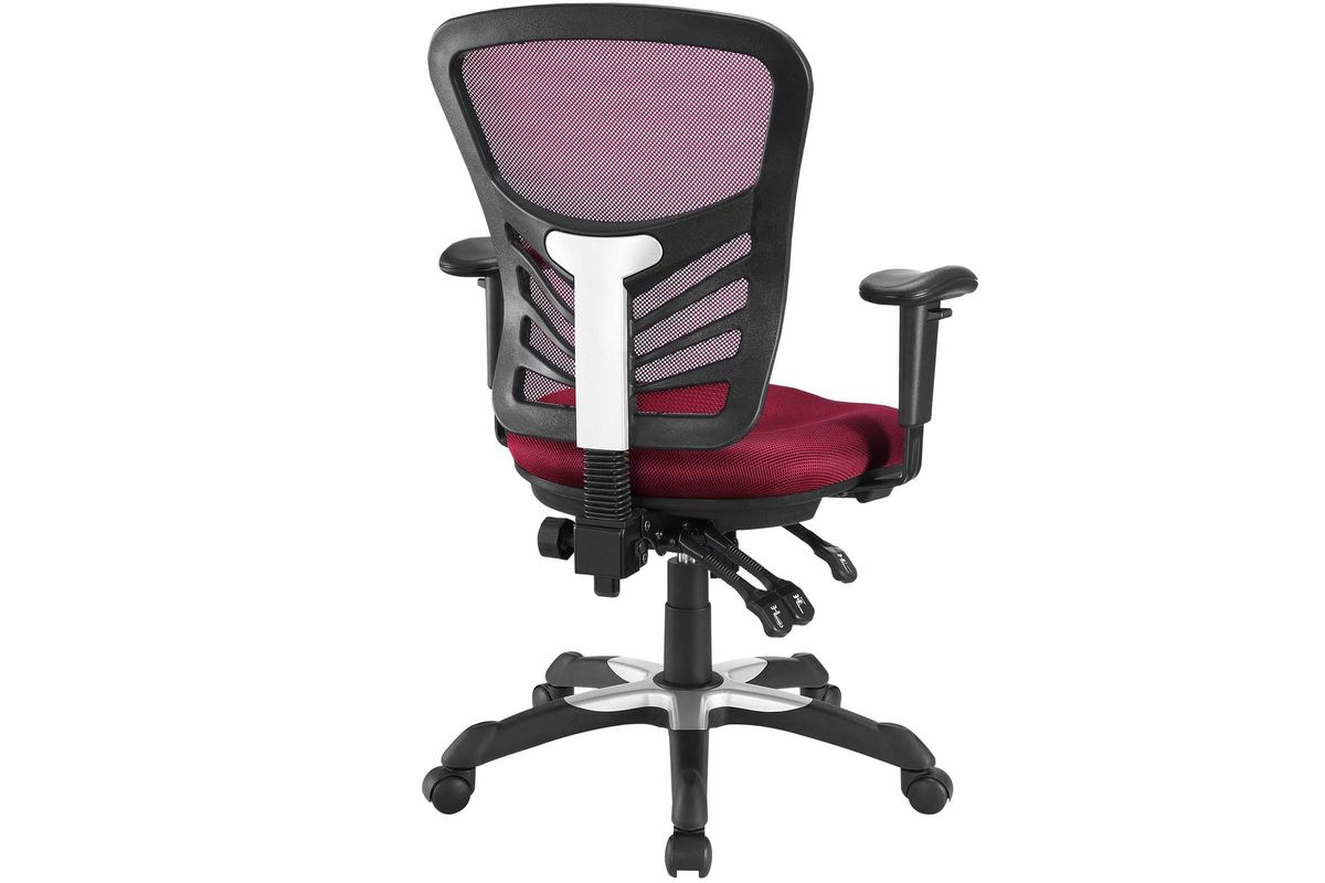 Mark a turning point in your office tasks with this upright and ergonomic mesh office chair. Let the breathable mesh back and plush fabric cushion seat serve as a simple extension to your everyday work ventures. The back height and seat depth are both easily adjustable to fit your height and size, while two sturdy armrests height adjust to assist your vertical seat posturing. Articulate also includes tilt tension and lock functions to recline and incline comfortably as needed. Fitted with five hooded dual-caster wheels, give yourself the ability to easily glide over carpeted floors while naturally performing tasks without exertion.
