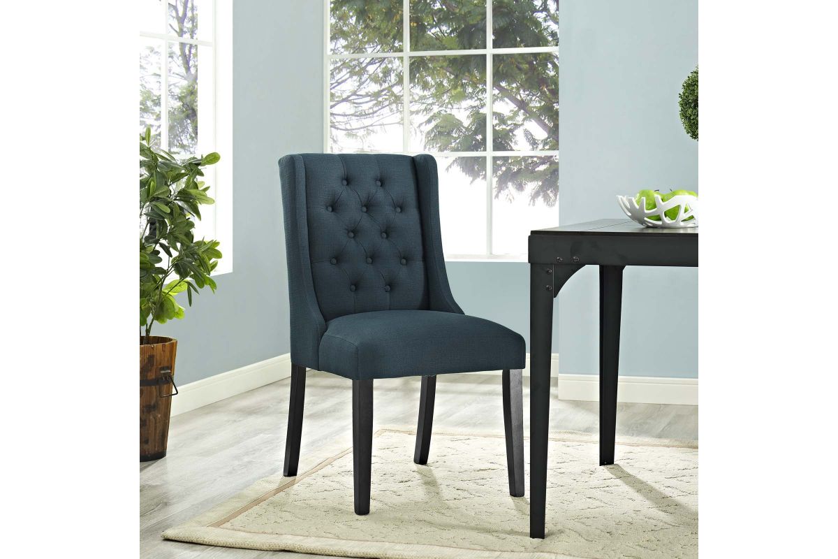Bestow splendor with Baronet. Charm and elegance adorn this luxuriously button tufted dining chair complete with sleek curves and dignified form. Featuring dense foam padding, fine fabric upholstery, solid wood frame, and non-marking foot glides, Baronet is a stylish dining chair perfect for the modern home.