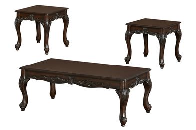 The Amelia tables include a cocktail table and two end tables. The beautiful carved design on these tables match the design on the Amelia sofa, loveseat and chair. These tables will coordinate perfectly with the Amelia Collection. The rolled feet, detailed design and sturdy wood structure will upgrade your home instantly with its traditional design.