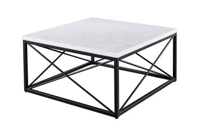 A modern occasional cocktail table featuring a unique modern latticework iron base with stunning white marble tops. This mixed media table feels light and airy but its marble tops give extra durability for heavy duty use in the toughest environments, the family room. Bring style and beauty to your living room with the Skyler White Marble Cocktail Table.