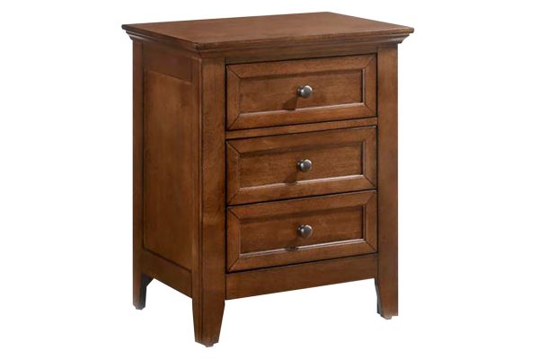 Organize your bedside essentials with the San Mateo Nightstand. With 3 spacious drawers, this nightstand offers ample space to store all your essentials, while the cedar lined bottom panels add a touch of luxury. The Rustic Brown finish, complemented by aged bronze hardware, creates a warm and sophisticated feel. The drawers feature full extension drawer glides for easy open and close, while the accented English dovetail drawer construction adds a touch of elegance. Crafted from select hardwoods and birch veneer plywood, this nightstand is the perfect addition to any bedroom. The tapered legs and raised bottom provide a touch of style