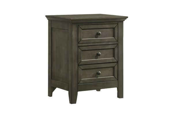 Organize your bedside essentials with the San Mateo Nightstand. With 3 spacious drawers, this nightstand offers ample space to store all your essentials, while the cedar lined bottom panels add a touch of luxury. The Grey Finish, complemented by aged bronze hardware, creates a warm and sophisticated feel. The drawers feature full extension drawer glides for easy open and close, while the accented English dovetail drawer construction adds a touch of elegance. Crafted from select hardwoods and birch veneer plywood, this nightstand is the perfect addition to any bedroom. The tapered legs and raised bottom provide a touch of style