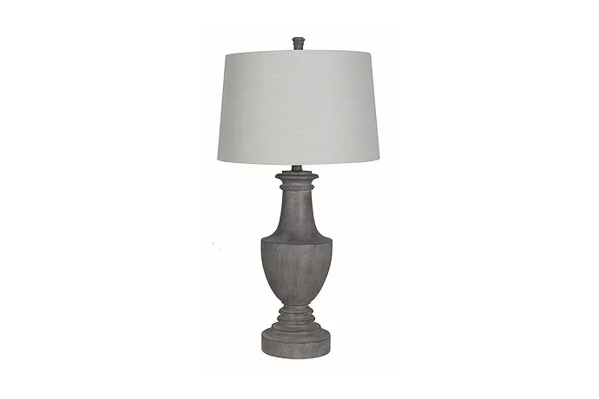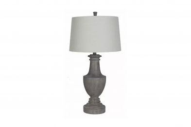 Traditionally designed with a rustic patina, the Grey Wood 31" Table Lamp will add character to your space. Crafted of a wooden base and showcasing an up-turned silhouette, the distressed grey finish adds an airy antiqued look. Topped with a white linen drum shade, the Grey Wood 31" Table Lamp will light up your room.