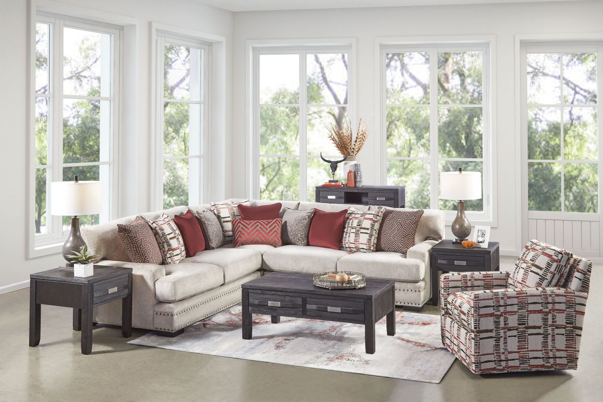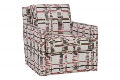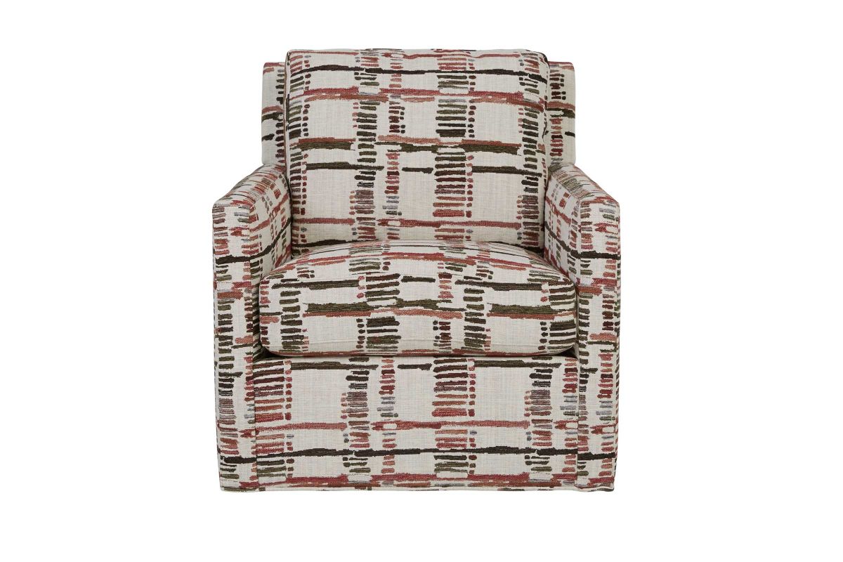 The Bulova Swivel Accent Chair is the perfect stylish centerpiece for your living space, blending contemporary appeal with convenient comfort. The classic style of the track arm paired with the abstract patterned cover offer stylish yet sophisticated detailing. Proudly crafted in the USA, this swivel chair offers allows for you to swivel at 360 degrees without having to reposition. The neutral beige tones of the fabric allow for this collection to blend with a variety of color palates while the stylish red hues give this swivel accent chair a pop of color. Hosting becomes easy with the Bulova Swivel Accent Chair.