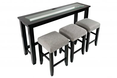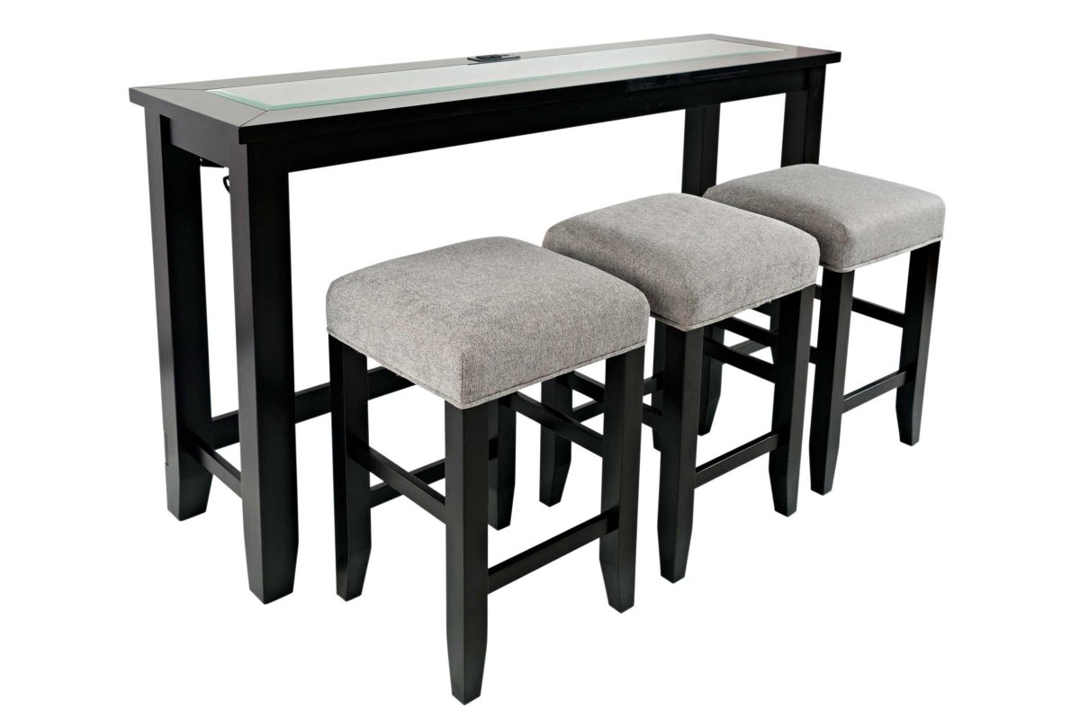 The Urban Icon Console Table with 3 Stools is where functionality and style meet. This set includes a console table and three stools. This set can easily be displayed in your living space to enjoy a meal, or your entertainment area to finish up some work while watching your favorite show. USB ports and a power outlets make it easy for you to keep your devices charged while lounging or working. The Urban Sofa Dining Table with 3 Stools combines modern accents with traditional looks making it easy to encorporate into any living space.