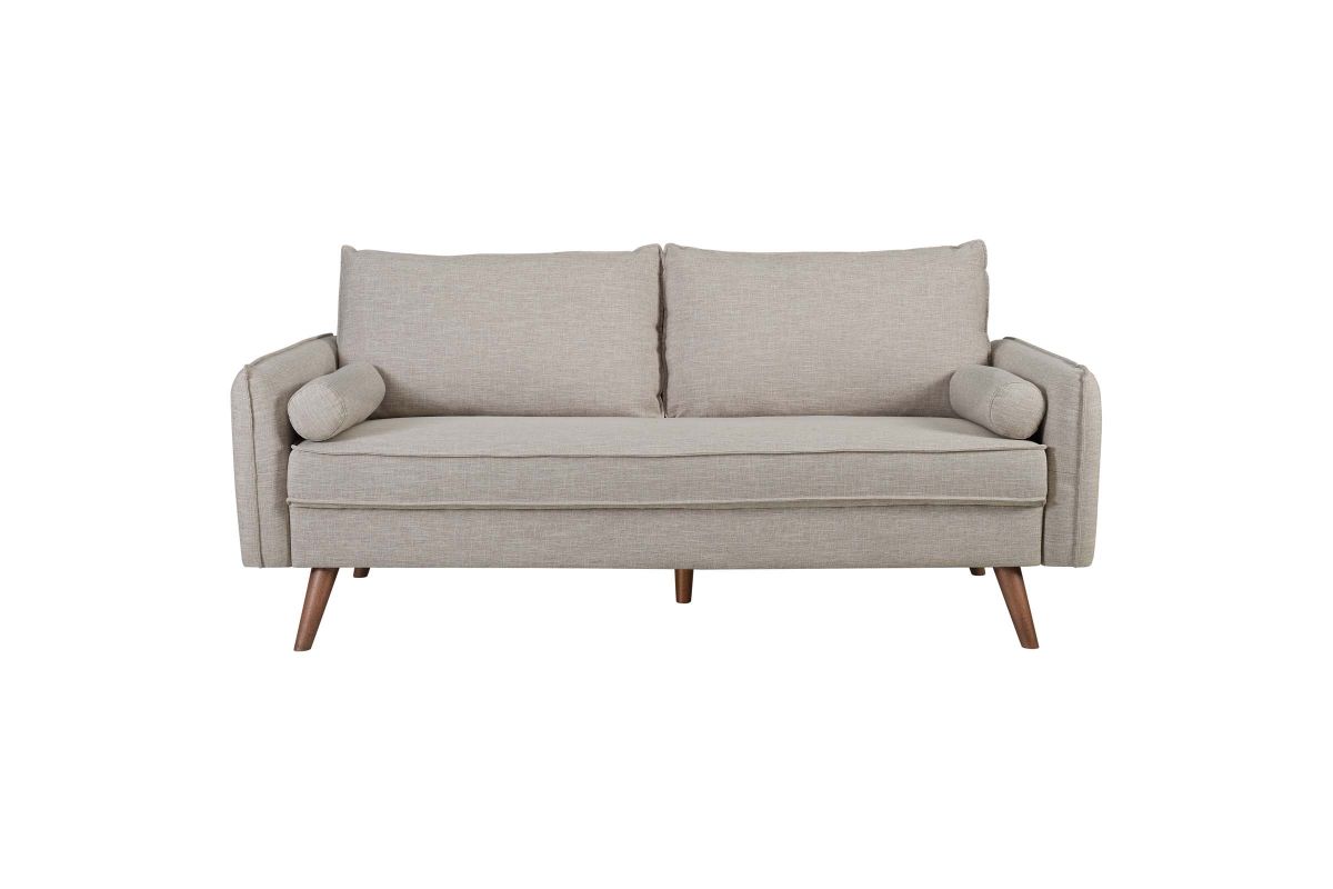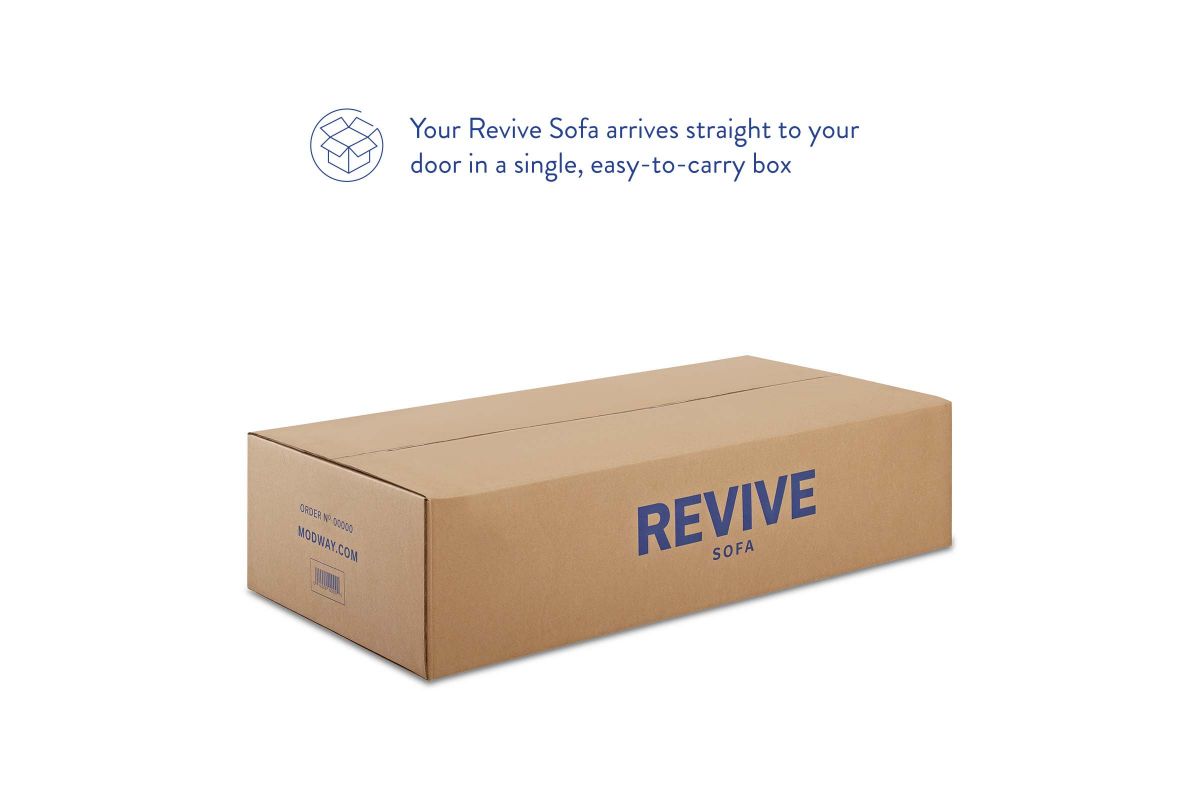 Give new vitality to your home or apartment living space with Revive. With a comfortable yet tailored profile and two bolster pillows, Revive beckons guests to sit and stay a while. Its soft fabric upholstery grants this sofa an approachable appeal thats echoed by its calming color, clean lines, and splayed wood legs. Arriving directly to your doorstep in a convenient shipping box, Revive easily unpacks to quickly become the most well-loved lounge spot in your home.