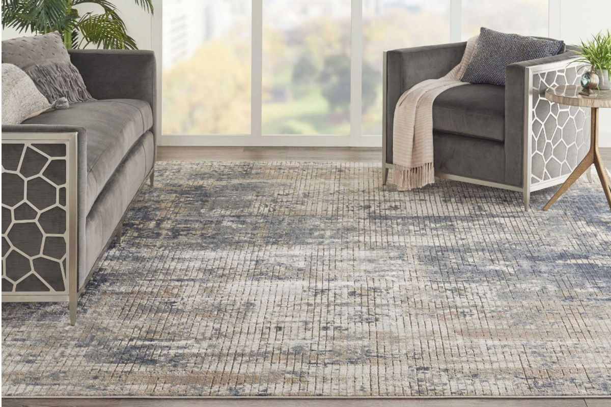 This lush and elegant Quarry 5x7 Area Rug captures the visual excitement of abstract art. Its distressed style maximizes the textural appeal of the dense, power-loomed pile. Subtle yet statement-making in artful tones of mineralized beige and blue.